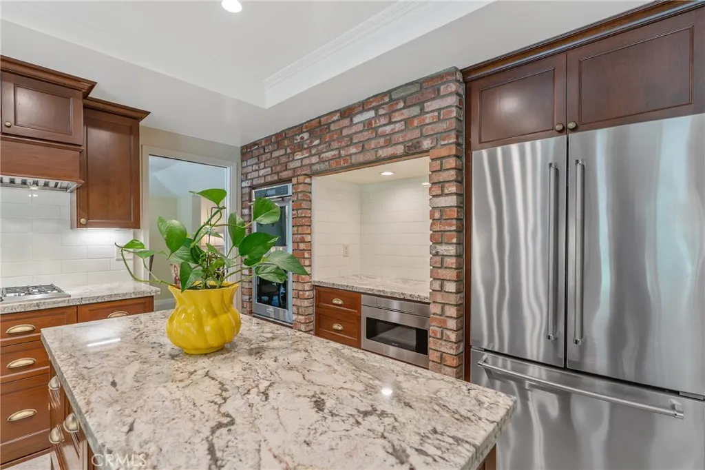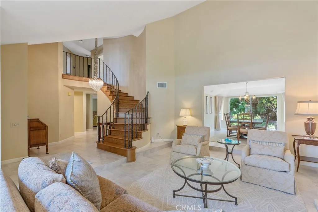 Located in the desirable Spy Glass Estates, this large turnkey home offers over 3,200 square feet of airy, sun-filled living space. From the charming front porch sitting area to the sweeping spiral staircase, style and comfort meet at every turn. Soaring vaulted ceilings, Italian tile flooring, a wet bar, 2 fireplaces, and seamless indoor-outdoor flow make this home ideal to enjoy with family and for entertaining with friends. The remodeled kitchen features a center island, ample counter space and stainless steel appliances. There is a main floor bedroom and bathroom with a gorgeous new shower. The primary suite is a true retreat with a sunken tub, shower, double vanity, and large closet. The oversized upstairs family room offers endless possibilitiesoffice, playroom, media room or even a potential fifth bedroom. The lush front and back yard was professionally curated by R.A. Landscape Designers. The back is exquisitely manicured and very peaceful. There are multiple fruit trees including avocado and lemon, along with a large shaded patio and a serene pond. Other features include an indoor laundry room with a utility sink along with a 3 car garage. Tucked in a beautifully maintained neighborhood close to schools, shops and local favorites, this home offers the perfect blend of tranquility and convenience.