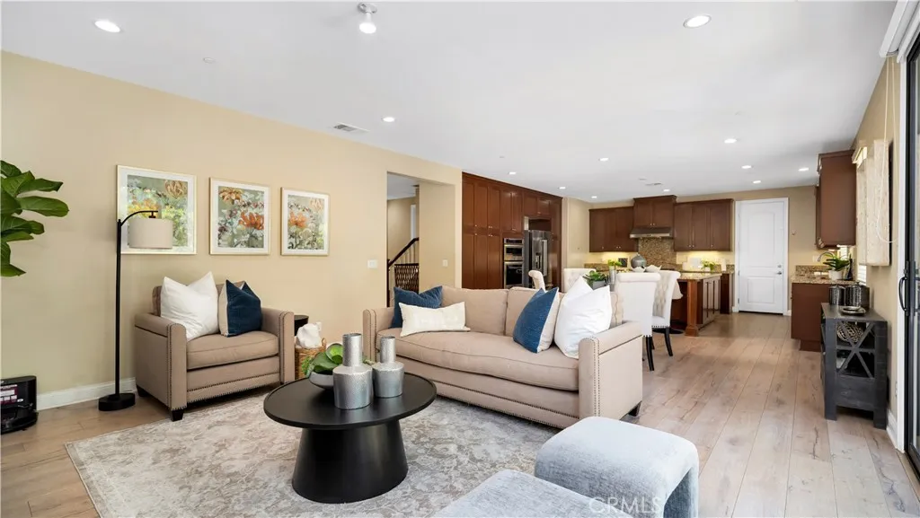 Motivated Seller. Don't miss this opportunity to own this SFR in one of the most sought after neighborhoods in Irvine. Welcome to 103 Sabiosa, a beautiful5-bedroom, 3 .5-bath farmhouse-style home in the heart of Pavilion Parkone of Irvines most sought-after communities in the Great Park Neighborhoods. Located on a quiet, tree-lined street with charming elevation and a welcoming front porch, this 2,937 sq ft home on a 4,500 sq ft lot offers the perfect blend of style, comfort, and functionality. Step inside to discover an open-concept layout that features a formal living rooma rare gemalongside a bright and airy family room that seamlessly connects to a gourmet kitchen. Designed with entertaining in mind, the kitchen boasts a massive island, granite countertops, six-burner cooktop, built-in microwave/oven, and abundant storage. The main-floor en-suite bedroom provides a perfect space for guests, extended family, or a private home office. A powder room and laundry room enhance the homes thoughtful floor plan. Upstairs, retreat to a spacious primary suite with a custom walk-in closet and spa-inspired bathroom complete with a soaking tub, walk-in shower, and dual vanities. Three additional bedrooms, a full bath, and a versatile loftideal for a playroom, media room, or optional sixth bedroomcomplete the second level. Step outside to a beautifully landscaped backyard with a custom fireplace, built-in BBQ and elegant fountain for relaxing or hosting under the stars. Additional features include paid solar, a two-car garage, smart home upgrades, and access to top-rated Irvine school