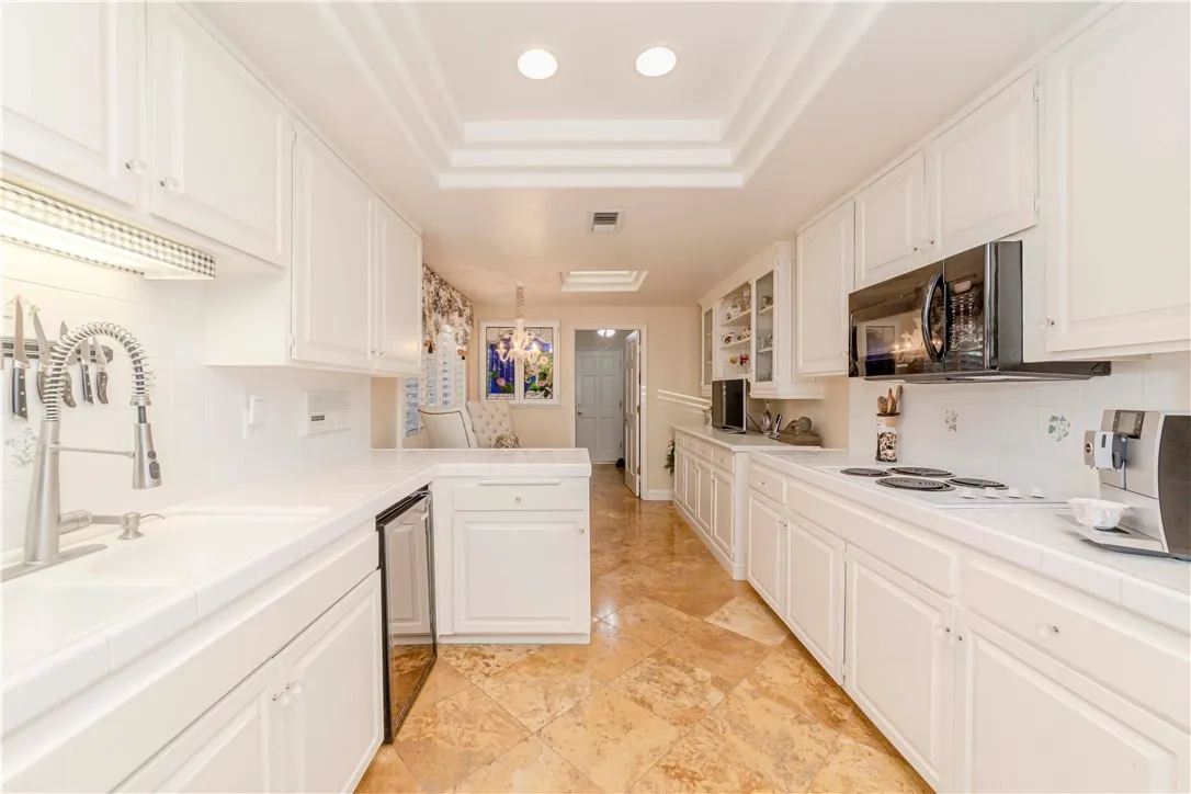 Welcome to this stunning single-story home located in the highly sought-after community of Canyon Crest Villas, perfectly positioned on Tee Box #3 of the golf course. Enjoy panoramic views of the fairway and surrounding hills from both the living room & primary suite, creating a peaceful & picturesque backdrop for everyday living. Meticulously maintained and thoughtfully remodeled with approximately $200,000 in upgrades, this home offers a perfect balance of elegance, functionality, and comfort. The remodeled kitchen features custom cabinetry, tray ceiling with recessed lights, a wine refrigerator, and a cozy breakfast nook for informal dining. A formal dining area is adjacent to the living room, ideal for entertaining. Soaring wood-beam ceilings, travertine flooring, new carpet, & abundant natural light from skylights and large windows create a bright, airy ambiance. The travertine-faced fireplace adds warmth and style to the living room, while plantation shutters, bullnose corners, new baseboards, and recessed lighting elevate the homes sophisticated appeal. Custom-built-ins in the home office provide a comfortable & functional work-from-home space. The primary suite also enjoys sweeping golf course views and opens directly to the fully covered patio, which is also accessible from the living room. Dine al fresco while taking in the tranquil setting & spectacular sunsets. Both bathrooms have been beautifully updated. The primary bathroom features a luxurious walk-in shower with dual shower heads, offering a spa-like experience. The home also includes newer dual-pane window