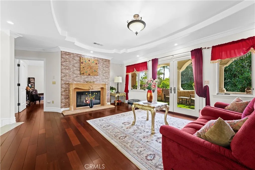 Prestigious Tarzana Estate South of Ventura Blvd Timeless Luxury & Exceptional Privacy Experience the elegance, comfort, and grandeur of this pristine 6844 sqft estate set behind dual automatic gates on a prime, private lot in one of Tarzanas most coveted neighborhoods. From the moment you arrive, the circular motor court framed by swaying palms and a stunning central fountain sets the tone for an extraordinary living experience. Step inside the 25-foot two-story foyer and feel the warmth and sophistication of a home designed for both lavish entertaining and peaceful everyday living. Every room exudes classic charm, from the multiple formal living and dining spaces to the two family rooms with cozy fireplaces. The chefs kitchen is a dream - complete with Viking range, dual dishwashers, built-in refrigerator, walk-in and butlers pantries, and a large center island perfect for gatherings. French doors open to a lush entertainers backyard featuring covered patios, a gourmet outdoor kitchen, private bathroom with shower, rock waterfall pond, shaded pavilion, grape arbor, synthetic lawn, and mature fruit trees - all creating a resort-like atmosphere youll never want to leave. The flexible floorplan offers a private downstairs guest wing - ideal for visitors or a home office, plus four en-suite bedrooms upstairs, each with walk-in closets and private terraces. The primary suite is your personal sanctuary, featuring a sitting room/gym with kitchenette, dual walk-in closets, private balcony, two fireplaces, and a spa-inspired bath with jetted tub, steam shower, and Juliet balconi