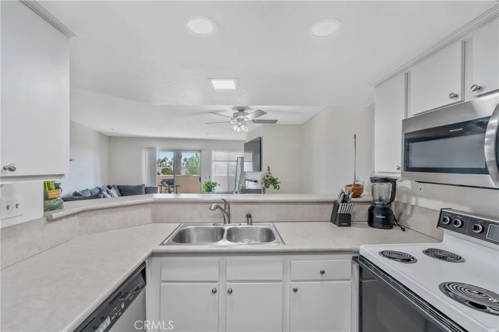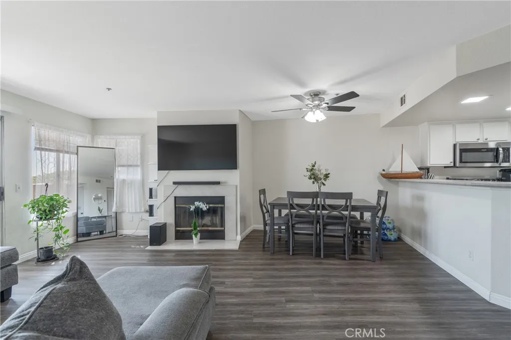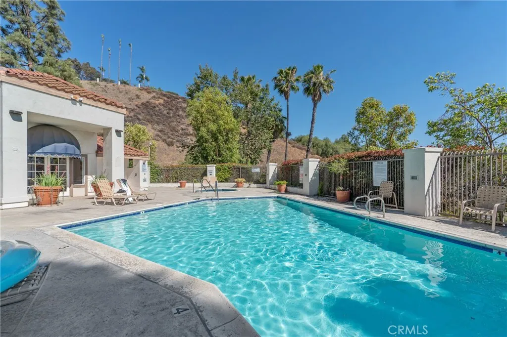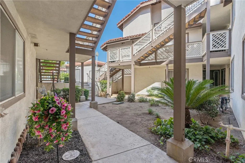 FHA APPROVED COMPLEX! Move-in-ready condo located near Diamond Bar and Phillips Ranch in a gated community. This lower-level unit features laminate wood flooring throughout, an open living room with a fireplace, air conditioning, A/C and natural light. The kitchen features recessed lighting and seamlessly flows into the living area, creating a spacious and inviting layout. Two private covered patios offer additional outdoor space for relaxation. The unit also includes in-unit laundry hookups with an electric dryer connection, conveniently located in a dedicated closet. Assigned covered parking and a shared garage space are included. Community amenities include a pool, spa, and clubhouse. Located close to shopping, dining, parks, and major freeways.