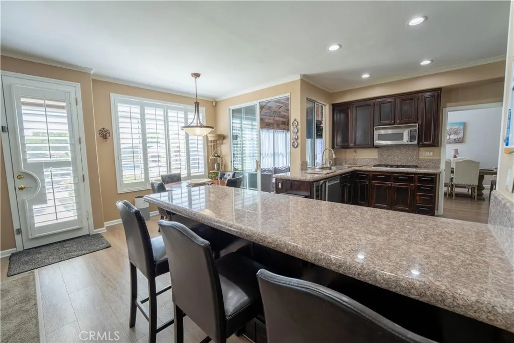 BACK IN THE MARKET. Welcome to this 4B/R 3 bath former model home, offering 2,757 sq ft of thoughtfully designed living space on a spacious 0.35 acre lot, located on a quiet street with no rear neighbors, the property backs to a natural ravine.providing privacy and panoramic sunrise and moonrise views.upgraded with fresh exterior paint, recessed lighting throughout, new carpet upstairs and plantation shutter blinds on all windows, adding to its fresh, modern and refined appeal. Inside the kitchen comes with fully equipped with a built-in refrigerator, double oven, dishwasher and a Viking wine fridge . Downstairs B/R with a full bath makes an ideal guest suitor in-law quarters. the upstairs features a spacious primary suite with an en-suite bathroom, along with two additional B/R each offering private access to a front balcony perfect for enjoying stunning pink sunsets, includes a bonus room perfect for a playroom, game room or hobby space.Step outside to your own private retreat featuring a pool and spa with gas heating, a covered outdoor BBQ area, a build-in gas firepit, and outdoor surround sound speakers to entertain guest in style. 3 car garage with an EV charging outlet and low-maintenance artificial turf in both the front and back yard helping save on water and landscaping costs. the property combines luxury, privacy, comfort and functionality ready for you to move in and enjoy.
