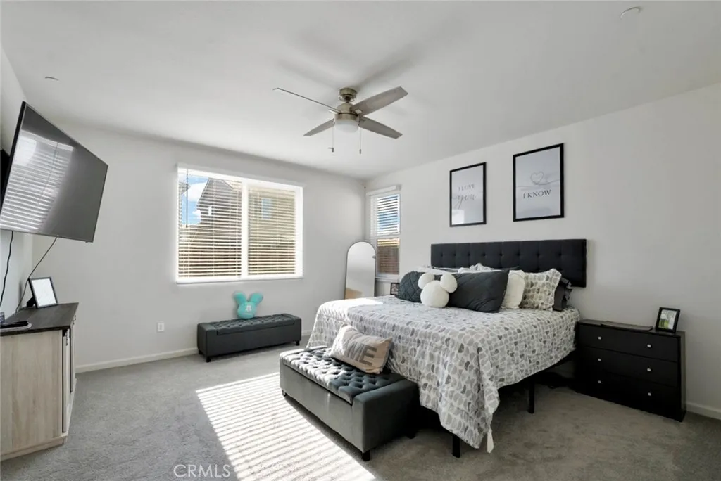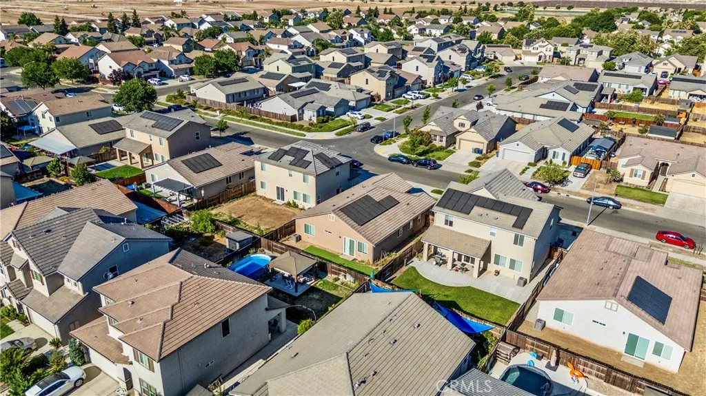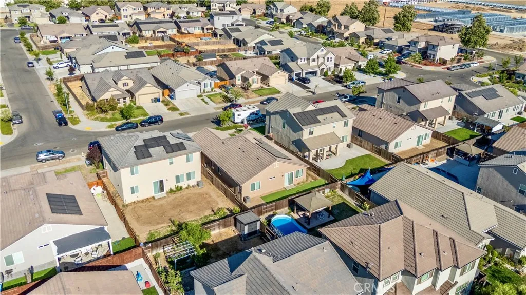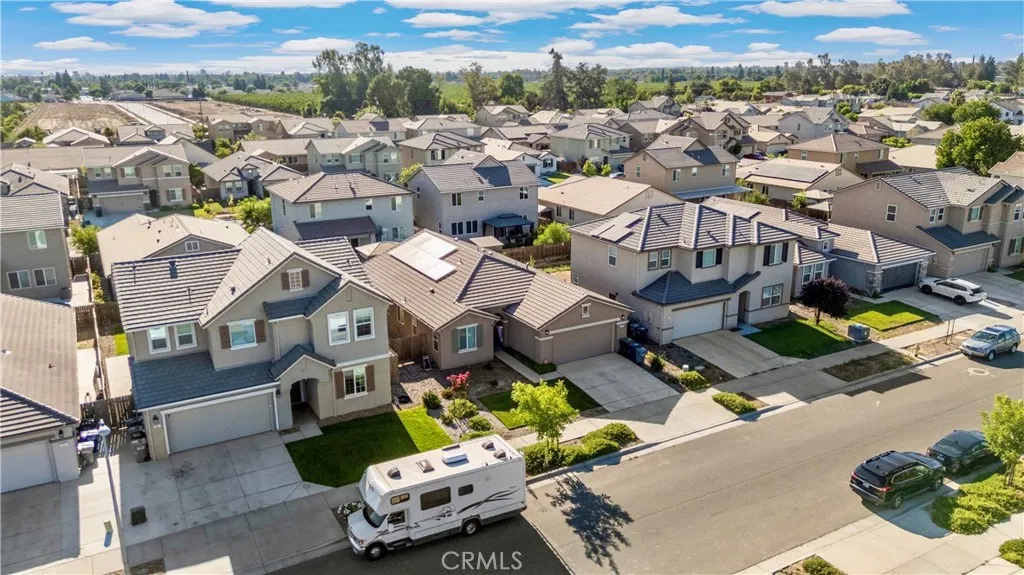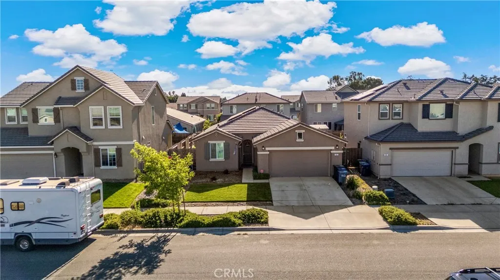 This modern 3-bedroom, 2-bath home, built in 2022, offers the potential for a 4th bedroom and features upgraded wooden cabinets, sleek quartz countertops in the kitchen, and dual-pane windows throughout. Both bathrooms come with dual sinks for added convenience, while the backyard is equipped with low-maintenance turf grass. For comfort and efficiency, the home includes a whole-house fan, attic fan, and leased solar panels. Additionally, the garage has electrical wiring ready for an EV charger. Located just down the street from Freeway 99 in southeast Merced, you'll enjoy easy access to commuting routes, shopping, dining, and more. Don't miss your chance to own this beautifully upgraded, move-in-ready home!