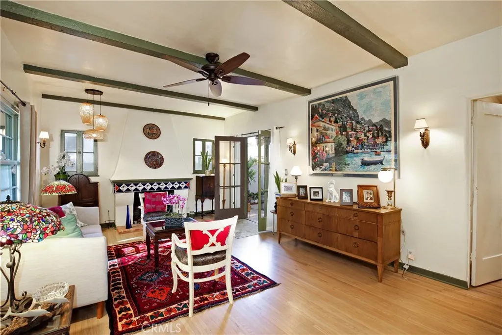 Welcome to this Spanish-style 2 bedroom and 1 bath home located in the highly desirable Daisy Villa Neighborhood in Pasadena with many original details. This home features a beamed ceiling in the living room, beautiful fireplace, French doors that open out to an enchanting patio, formal dining room, wood floors and many period wood windows. The kitchen includes practical amenities like stainless steel appliances, a farmhouse sink, and custom cabinetry, making it suitable for everyday cooking. Two bedrooms-one with access to the patio, bathroom with subway tile, 2 storage sheds, and a garden area with several shade trees. Conveniently located near 210 Freeway, parks, schools, shopping, Old Town Pasadena, Metro Gold Line, Rose Parade viewing areas, 2 miles away from Caltech, 2 miles away from The Huntington Library Art Museum and gardens, 3 miles away from Arboretum and Botanical Gardens, minutes away from the Art Center College of Design and the Rose Bowl. This house is a must see.