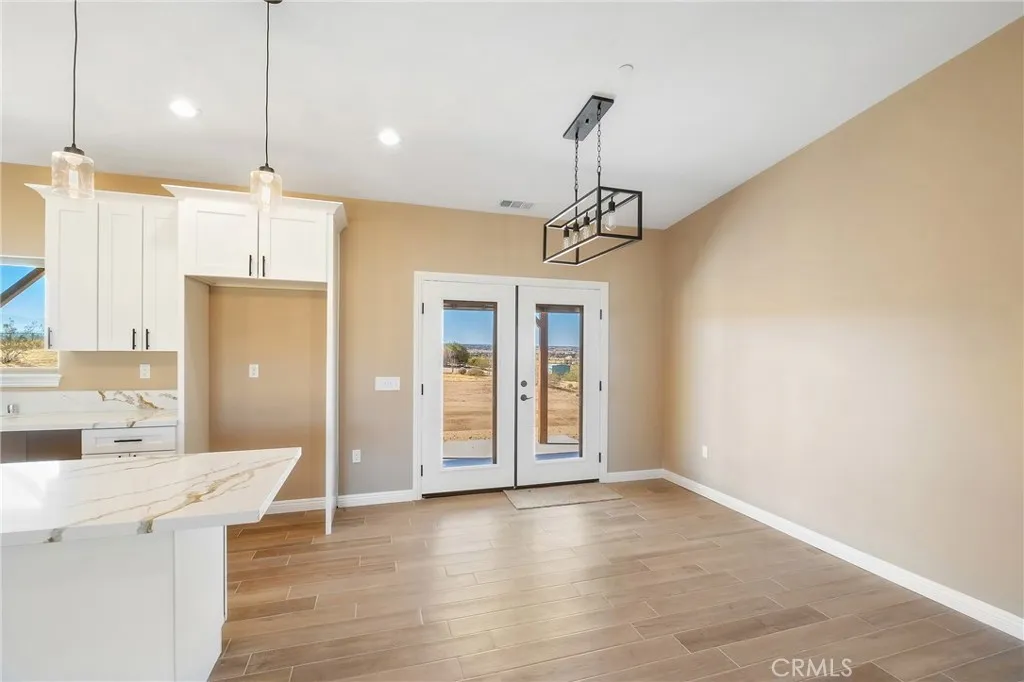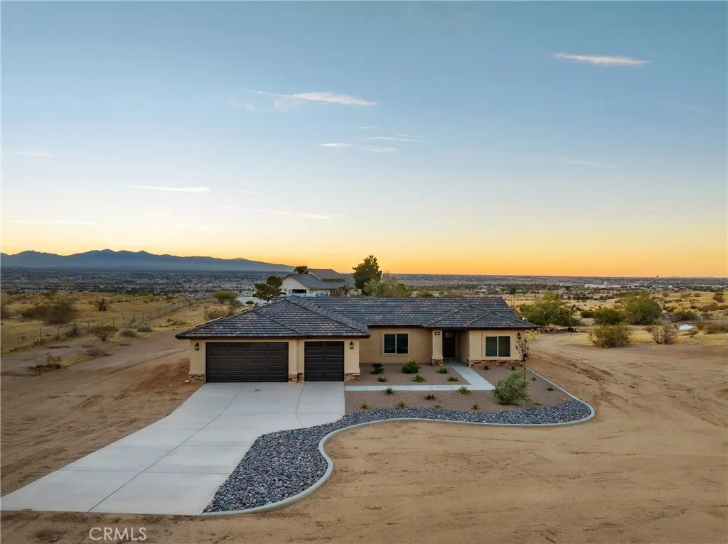 AMAZING VIEW PROPERTY . This home is just a few miles from Jess Ranch Marketplace and Apple Valley and Del Webb golf course . Location is a unique and important thing about a home and this one sits in a excellent location . As you approach you are welcomed by beautiful landscape , custom stone work in a quite neighborhood . Property has RV access and plenty of space to do what you dream of with a 3 car garage and zoned equestrian residential. Vaulted with 9 foot ceilings through out the home this home has a cozy feeling the moment you walk in . High end details include Calcutta quartz counter tops with a huge kitchen island and bar , soft close cabinets with tasteful upgraded bronze hardware and sinks throughout the home to add contract and are very appealing to look at. Walk in pantry , drop down lights with can lights . Formal dining area next to the kitchen . In house laundry room . All bed rooms are extremely large with views through the windows. Primary bedroom has a huge walk in closet 2 sinks restroom shower and bath.