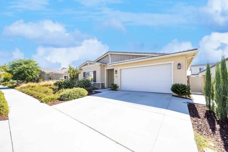 Welcome to your dream home in the highly sought-after Audie Murphy Ranch community of Menifee! This expansive 4-bedroom, 2.5-bath single-story energy-efficient home offers nearly 2,935 sq. ft. of beautifully designed living space on a generous 7,840 sq. ft. lot featuring mature fruit trees and thoughtfully landscaped outdoor areas perfect for entertaining or relaxing. Built in 2020, this home showcases an open-concept layout with soaring ceilings and dual living areasideal for both entertaining and everyday comfort. The chef-style kitchen features granite countertops, an oversized center island, walk-in pantry, and abundant cabinetry, making it the heart of the home. The spacious primary suite includes a spa-like soaking tub, separate walk-in shower, and a large walk-in closet. Three additional bedrooms offer flexibility for family, guests, or a home office. This energy-efficient home is powered by a solar system that generates up to three times the homes energy needs, delivering substantial utility savings and long-term sustainability. Additional highlights include a 3-car garage, dedicated laundry room, and a low-maintenance backyard with custom concreteideal for outdoor dining and relaxation. Located in one of Menifees most desirable master-planned communities, residents of Audie Murphy Ranch enjoy access to resort-style amenities including sparkling pools, soothing spas, a spacious clubhouse, Recreation room, scenic hiking and biking trails, and family-friendly playgrounds and picnic areasall within close proximity to top-rated schools, shopping, and freeway access. Thi