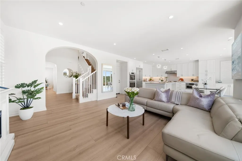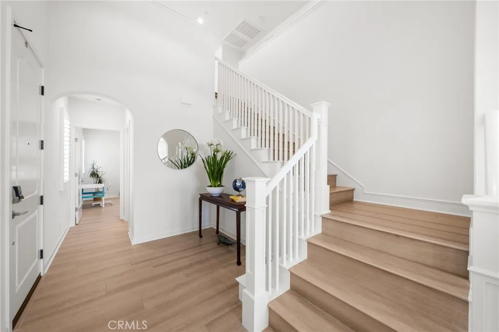 Step into luxury living in this beautifully upgraded 4-bedroom, 4-bathroom home located in the desirable Sierra neighborhood of Portola Springs, Irvine. Spanning approximately 2,524 sq. ft., this home has been thoughtfully enhanced with over $10,000 in premium upgrades for elevated style and comfort. The open-concept layout features real hardwood flooring throughout the entire home, creating a warm and cohesive flow. The chefs kitchen includes ceiling-height custom cabinetry, upgraded built-in appliances including a premium refrigerator, and a full designer tile backsplash. The adjacent great room opens seamlessly to a private outdoor space, ideal for California indoor-outdoor living. The luxurious primary suite is complemented by an upgraded bath with a full-height accent wall, upgraded countertops, and elegant finishes. The first-floor bathroom has also been enhanced with a designer backsplash and premium surfaces. Additional upgrades include an epoxy-coated garage floor, adding both durability and style. Upstairs, a versatile loft and bonus room offer flexible living optionsperfect for a home office, playroom, or guest space. Smart home features, solar panels, EV-ready garage, and energy-efficient construction round out this impressive home. Enjoy resort-style community amenities, scenic parks and trails, and access to award-winning Irvine Unified schoolsall within minutes of shopping, dining, and major freeways.