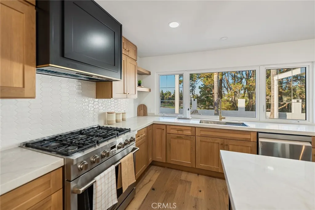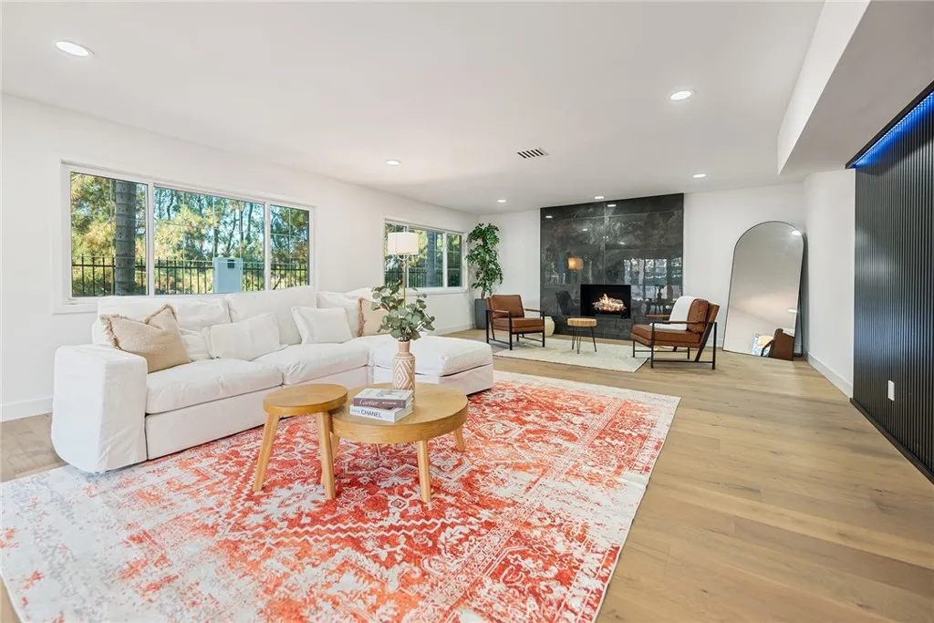 Welcome to a show-stopping, fully reimagined masterpiece where modern luxury and effortless elegance come together in perfect harmony. This turn-key stunner has been transformed from top to bottom, featuring brand-new engineer wood flooring, sleek high end appliances, and a wide open floor plan that flows beautifully for both everyday living and unforgettable entertaining. Step into the heart of the home with the perfect view of the kitchen, featuring a striking center island. With seating for up to six, it's a true hub for casual dining, conversation, and connection. With soft, wavering tones throughout and natural light pouring in from its ideal south-facing orientation, every corner of this home feels warm, vibrant, and alive. Youll love the two distinct living areas that offer flexibility and comfort, plus a highly desirable downstairs bedroom with a full bath and private entrance perfect for guests, in-laws, or a stylish home office.Upstairs, escape to your private sanctuary the primary room is pure indulgence with soaring ceilings, a dreamy walk-in closet, and renovated restroom featuring his-and-hers vanities and a touch of a luxurious shower. Four additional bedrooms upstairs are generously sized, accompanied by two full baths and an upstairs laundry room for ultimate convenience. Finally once you step outside youll find your own personal oasis lush, private, and surrounded by nature. Whether you're lounging poolside, entertaining under the stars, or soaking in the peaceful vibes, this backyard delivers the lifestyle you've been dreaming of. This is more than a home