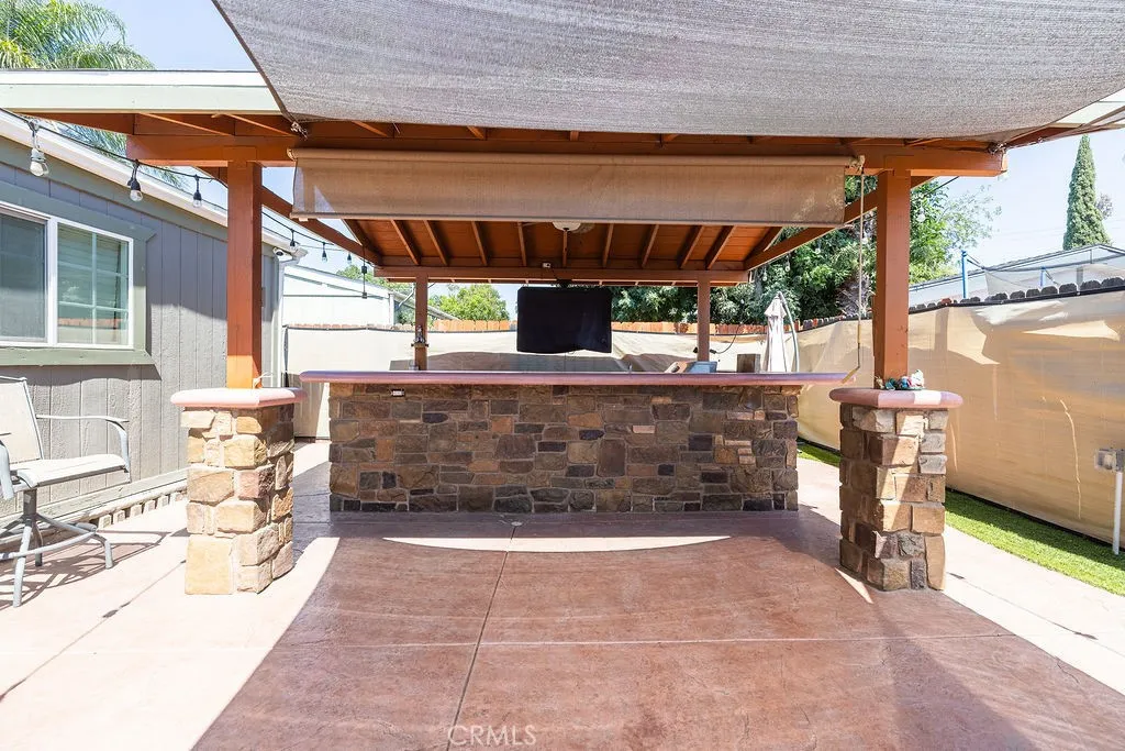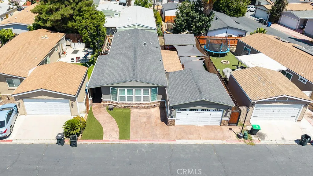 Fully Renovated Manufactured Home on Permanent Land No Land Lease! This beautifully upgraded manufactured home sits on its own land no space rent, no land lease! Featuring brand-new flooring, a new roof, fresh paint, custom cabinetry, updated drywall, and charming brick stone skirting, this home offers modern living with timeless touches. Enjoy outdoor entertaining with a stylish built-in barbecue island under a covered patio, perfect for gatherings year-round. A spacious 2-car garage provides ample storage and parking. Conveniently located near shopping centers, popular restaurants, and just minutes from the 10, 215, and 15 freeways, this home offers easy access to everything you need. Move-in ready with pride of ownership throughout dont miss this rare opportunity! Se Habla Espanol!