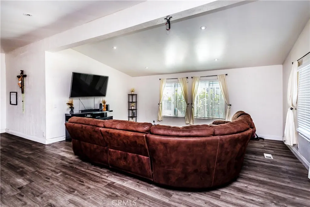 This beautiful spacious triple-wide mobile home with cathedral ceilings is now for sale! Boasting approximately 1,814 sq feet of living space, this home features 3 Bedrooms and 2 Bathrooms, along with 2 additional rooms that can be used as office or study rooms. As you step inside, you will be welcomed by an open living room area with recessed lights. The kitchen area is open and inviting, with a pantry, dining area and cozy fireplace. A sliding door leads to a spacious enclosed covered patio, perfect for hosting family gatherings. The house includes a 2 car garage with direct access to the house and laundry inside the garage. With vinyl flooring throughout, recessed lights, double pane windows and a brand new roof, this house is move in ready. Located in a prime location close to dining, shopping, freeways and attractions like Knotts Berry Farm and Adventure City, this home is waiting for you to call it home. Don't miss your chance to make this house yours today.
