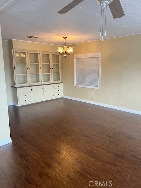 Beautiful well kept Mobil Home , This home is 1440 sq ft with 2 beds and 2 bathrooms, spacious kitchen with Gas appliances, Refrigerator included, with a Breakfast counter Bar. Off the kitchen is a Family Room with sliding glass doors that lead out to a patio. Large Living room with a formal dining room with a built in Hutch. Individual laundry room with washer and dryer included. 2 spacious Bedrooms and Bathrooms. Light and bright paint colors. Newer Engineered Laminate flooring throughout the home. Roof was redone in 2021, New Air June of 2025 and new Hot water Heater in Feb. 2025. Park has a Pool, spa, gym, club house and several clubs to join and much more. This park is gated for your security....Must see