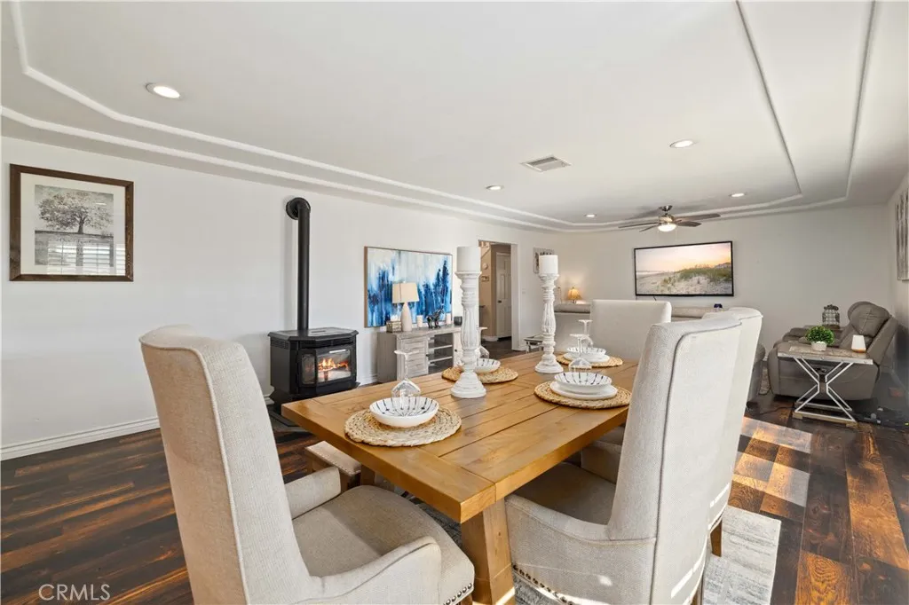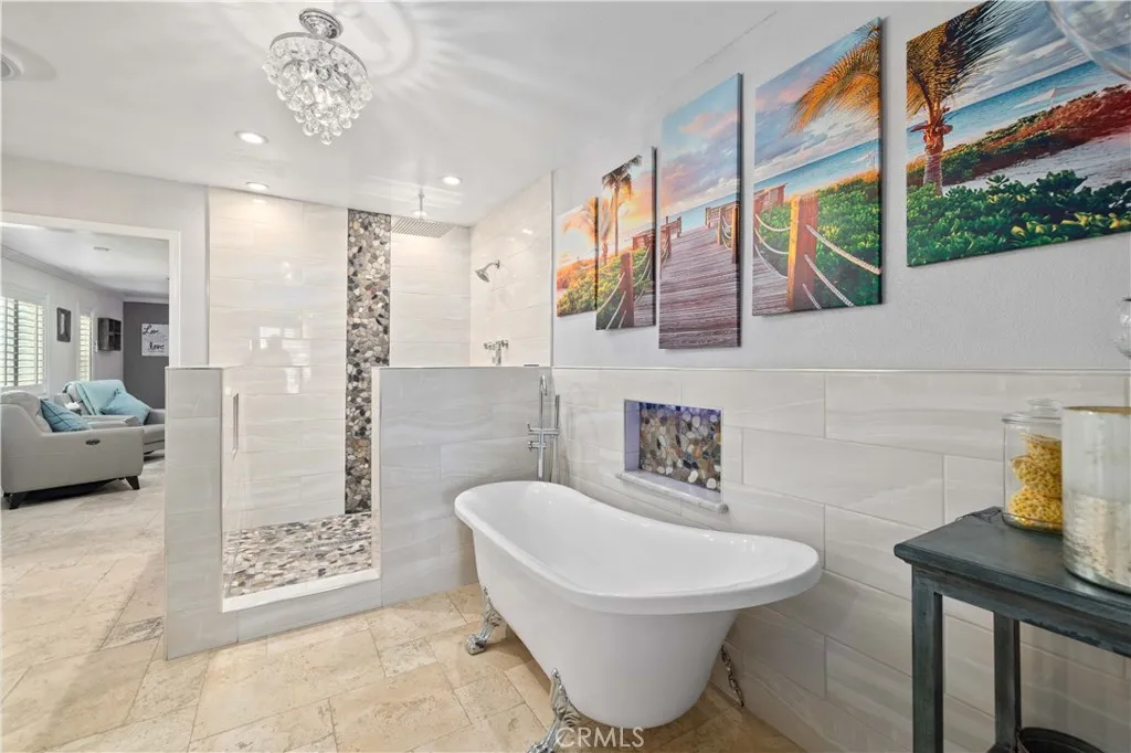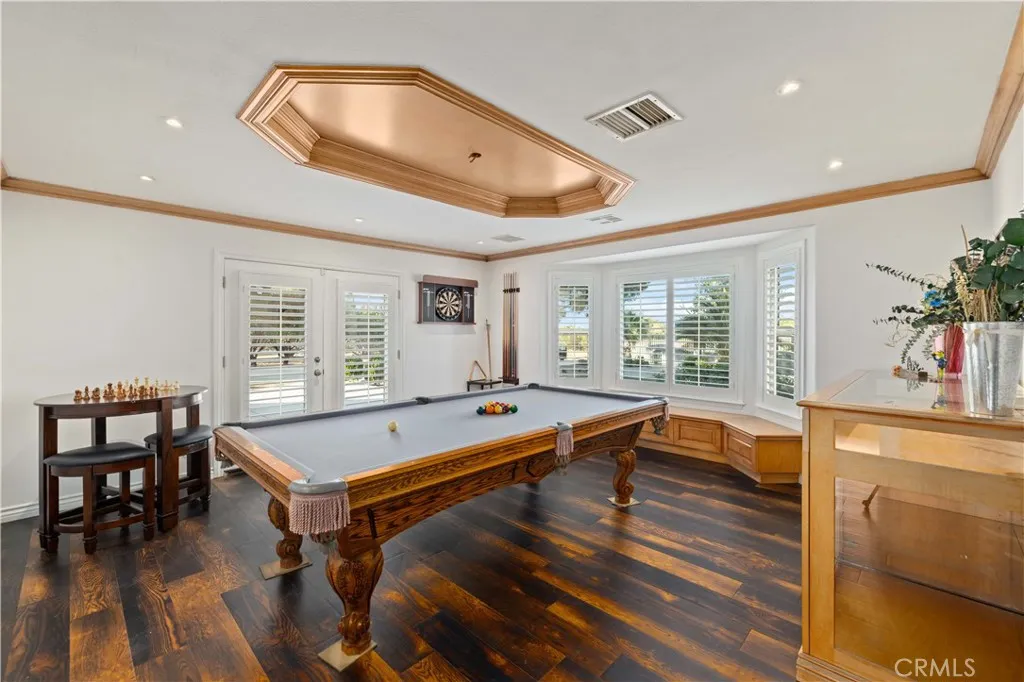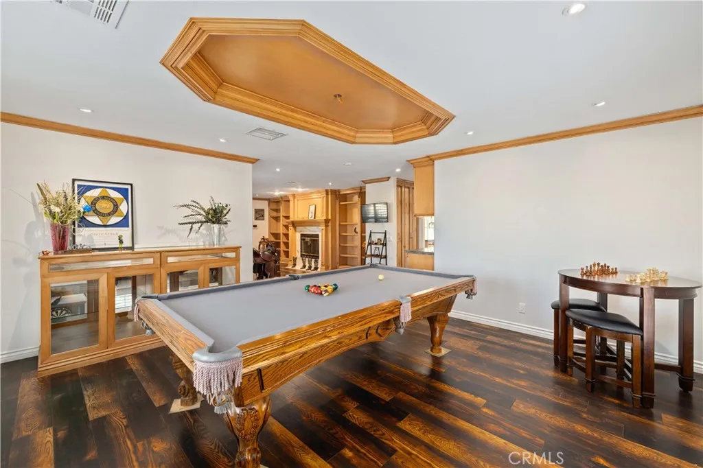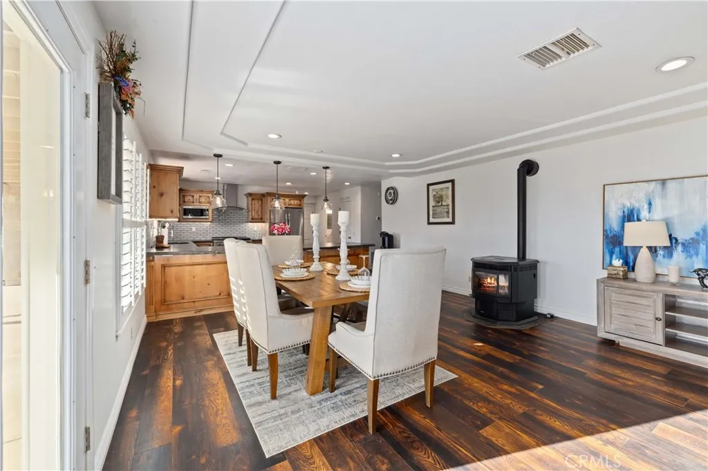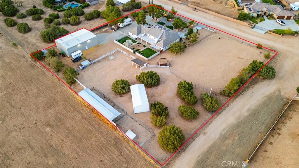 A rare opportunity to own a private, custom-built equestrian retreat with sweeping mountain views, a massive permitted workshop, and endless upgradesall on 2.5 acres of land! Nestled behind a block and wrought iron fence with electric gates, this stunning estate boasts curb appeal with professional desert landscaping, mature palm trees, a rose garden, and a spacious U-shaped driveway with full RV access. Inside, youll find soaring ceilings, wood-look plank flooring, upgraded baseboards, plantation shutters, and energy-efficient LED lighting. The formal living room features a cozy fireplace with custom mantle and built-ins, while the dining room offers a mini bar with a wine fridge and beverage cooler. The remodeled chefs kitchen stuns with custom Knotty Alder cabinetry, live-edge stone countertops, rustic pendant lighting, tile backsplash, stainless steel appliances, and a premium 6-burner Dacor range. The downstairs primary suite is a luxurious retreat, featuring travertine floors, crown molding, a spa-like bath with dual vanities, a clawfoot soaking tub, and a stone-tiled shower with rain head and body sprays. The adjacent walk-in closet spans an entire room, complete with high-end built-ins. A stylish laundry room offers live-edge counters, a deep utility sink, and ample storage. Upstairs includes three spacious bedrooms and a full bath. The private backyard oasis is fully enclosed with block walls and features grassy areas, a pergola, firepit, and covered patioperfect for enjoying the mountain views. The upper portion of the property is built for equestrian lovers with