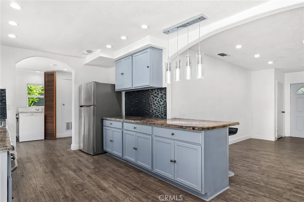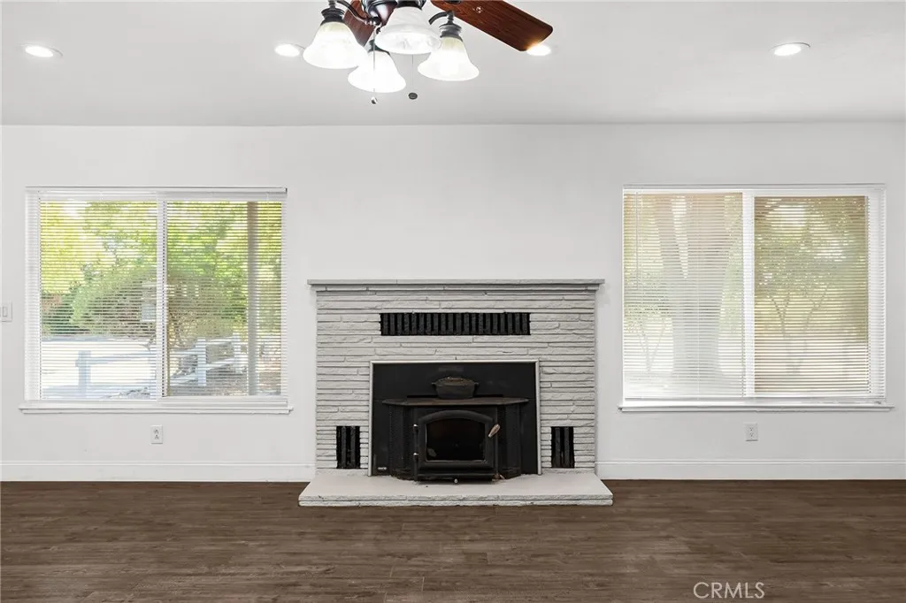 This spacious and thoughtfully updated 4-bedroom, 3-bathroom home offers a fantastic layout and a prime location near schools, parks, In Motion Fitness, and shopping. The split floorplan provides privacy and function, with the primary suite on one side of the home and three additional bedrooms and two updated bathrooms on the other. Step inside to find a spacious living room featuring a cozy wood-burning insert fireplaceperfect for relaxing evenings. The remodeled kitchen features granite countertops, custom tile backsplash, beautiful cabinetry, stainless steel appliances, modern lighting, and breakfast bar seating. The primary suite offers comfort and style, complete with a beautifully remodeled en-suite bathroom showcasing a glass-enclosed shower with tile surround, a double-sink vanity, and unique cedar panel ceilings for a warm, elevated touch. Additional features throughout include newer laminate flooring, double-pane windows, arched doorways, ceiling fans, recessed lighting, and stylish sliding barn doors that add charm and functionality. Outside, the large 0.32-acre lot offers plenty of parking and an expansive backyard thats ready for your imagination. With room for a pool, garden beds, play area, or all of the above, the possibilities are endless!