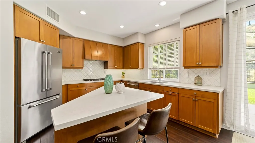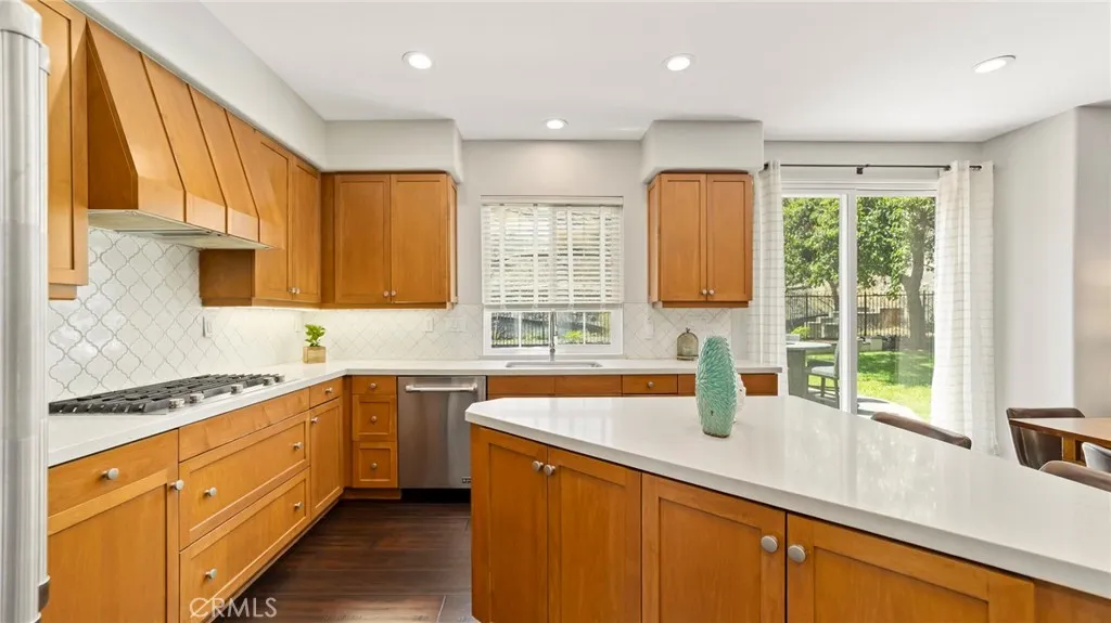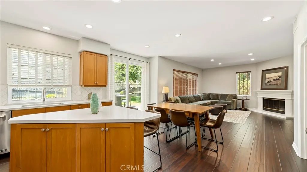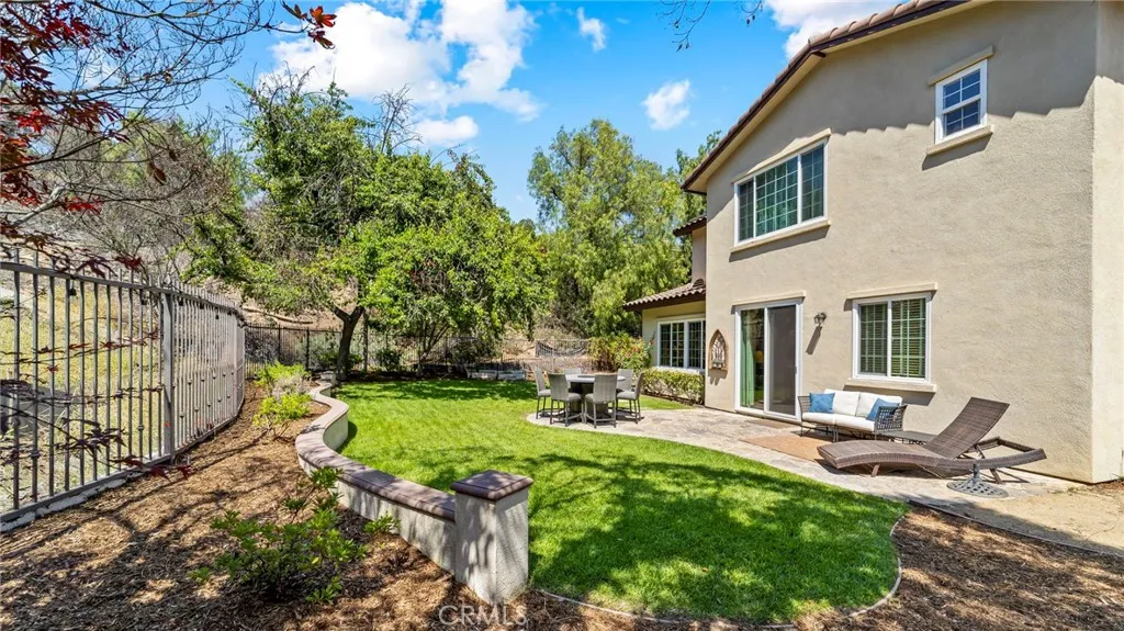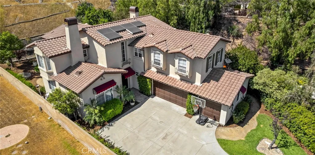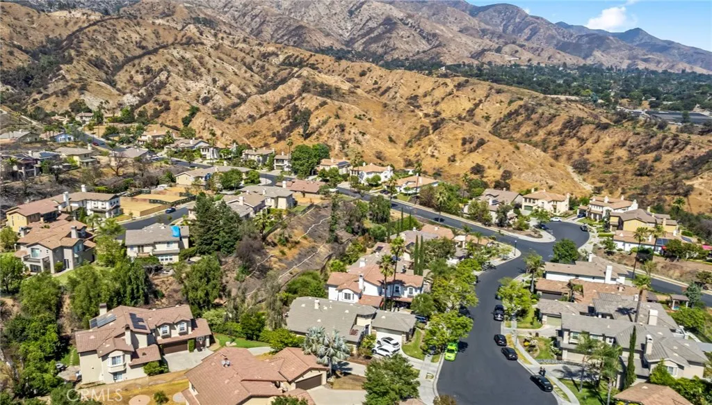 Tucked away on a tranquil cul-de-sac in the prestigious, guard-gated community of La Vina, this exceptional Mediterranean-inspired residence offers a rare blend of privacy, luxury, and peaceful community living. Nestled against the scenic backdrop of the San Gabriel Mountains, the home sits on a generous 10,441 sq ft lot and offers 3,329 sq ft of well-designed living space, creating a seamless indoor-outdoor lifestyle. Step inside to a dramatic entryway highlighted by a grand spiral staircase and soaring ceilings. The main level features formal living and dining rooms and an open-concept kitchen and family room anchored by a cozy fireplace and views of the lush backyard. The chefs kitchen is appointed with a center island, walk-in pantry, and a sunlit breakfast area, with glass sliders leading to a serene outdoor patio - perfect for entertaining or simply unwinding under the stars. The versatile floor plan includes a convenient downstairs guest suite with private bath, while the upstairs offers a spacious primary suite with a walk-in closet and a spa-style bath, along with three additional bedrooms - one en-suite and two with a shared Jack-and-Jill bath. Additional highlights include new paint throughout, engineered hardwood floors, plantation shutters, a separate laundry room, new carpet upstairs, and a 3-car garage. La Vina is one of the few guard-gated communities in the area, offering residents 24-hour security, walking trails, and resort-style amenities including a heated pool and playground area for family fun. The tight-knit neighborhood fosters a true sense of conne