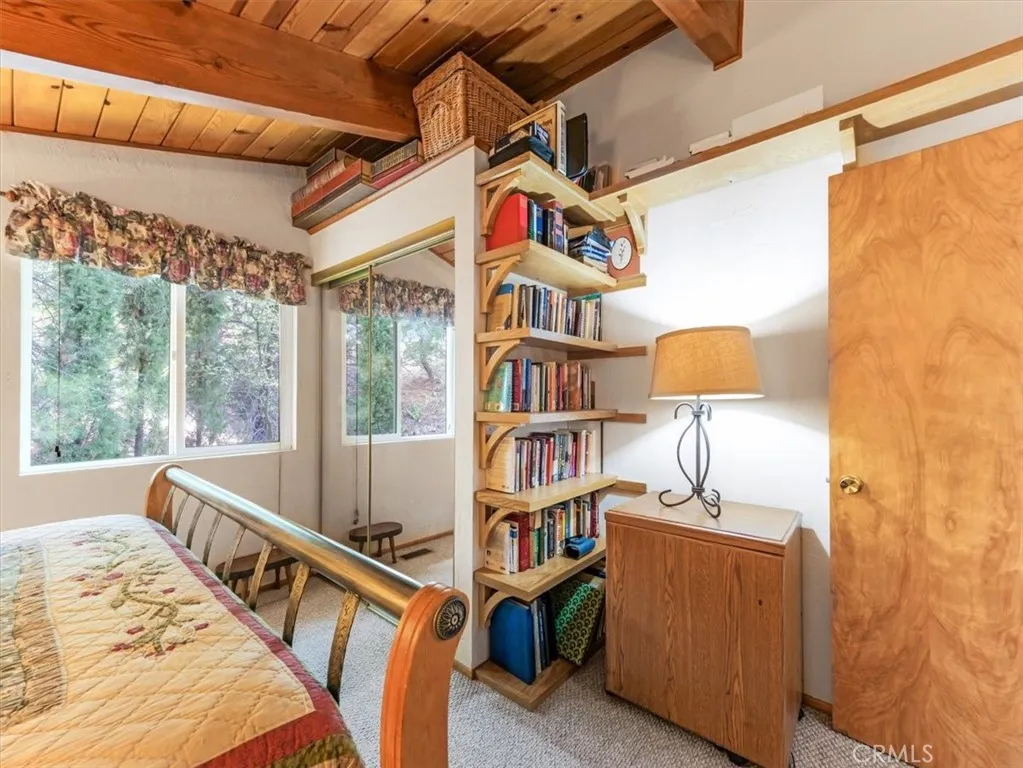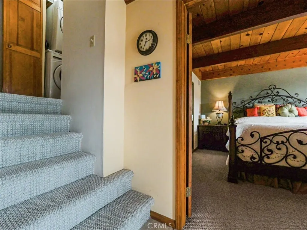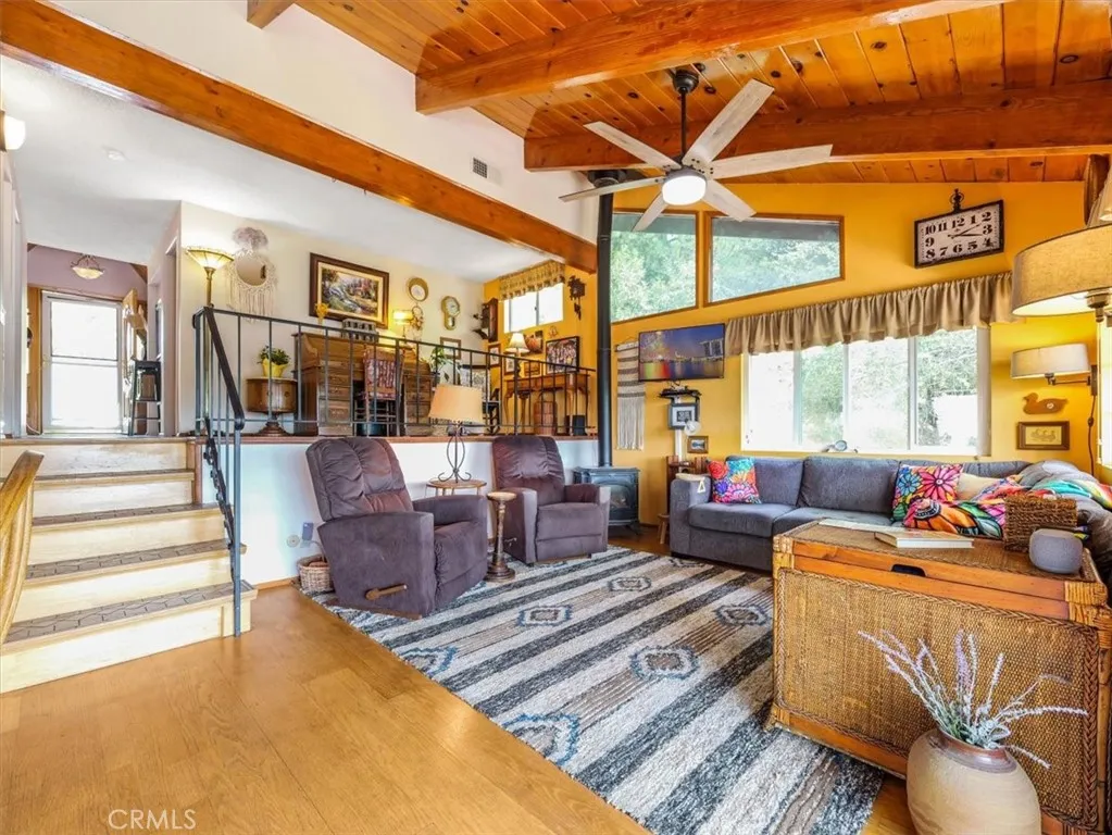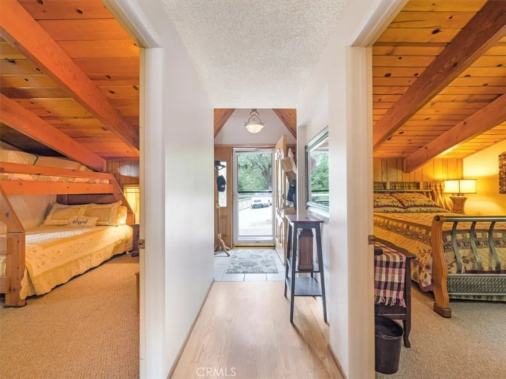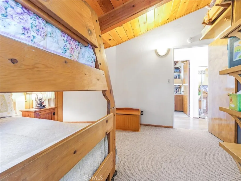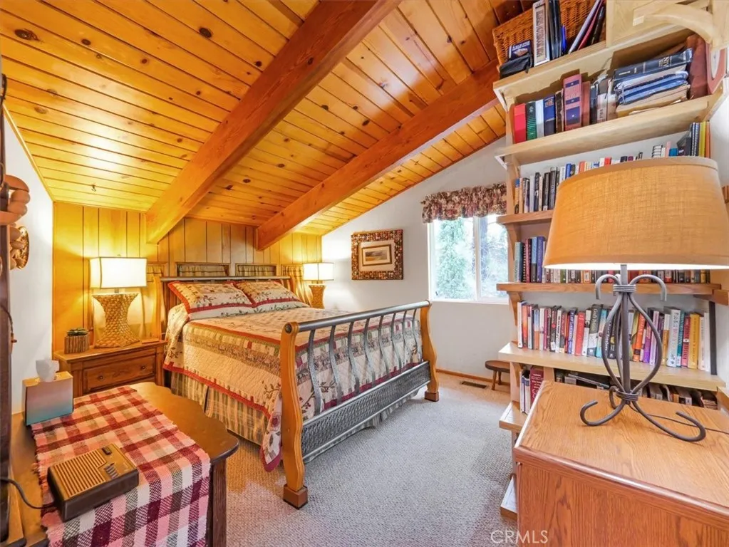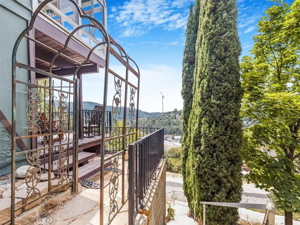 This charming 3 bedroom, 2 bathroom is perched on a hillside in the San Moritz area of Crestline and provides panoramic views of Lake Gregory. There is a full bath on each level, 2 bedrooms on the main floor. The downstairs level features a third bedroom and a room with access to the deck that can easily function as a fourth bedroom. The kitchen has stainless steel appliances and wood cabinets that match the pitched tongue and groove ceiling that extends into the living room. There is a freestanding stove in the corner adding to the charm of this special property. The loft area is separated from the living area by just a few steps and wrought iron railing. This area could easily be used as a dining room, office space, play area, or reading nook. The laundry area of this home is located on the landing between the first and second floors for easy access. The thing that truly sets this property apart is the large completely glass-enclosed deck which functions as a sunroom. The large windows in this area provide expansive, breathtaking views that are the first thing that can be seen as soon as you enter the property. The sunroom and large bottom floor deck are not included in the property's square footage, but provide additional living area. Newer copper plumbing and newer roof. The home has been well cared for and features brand new exterior paint and new carpeting ensuring the new homeowners can move right in and call this property home.