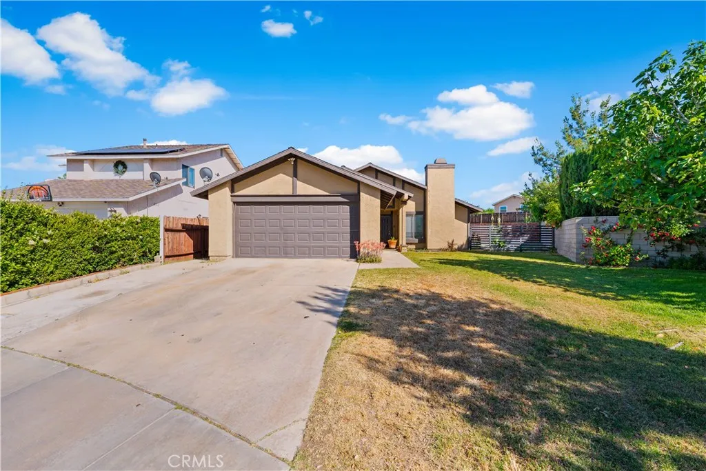 Welcome to this beautiful single-story home located in a quiet cul-de-sac. This well-maintained propery features 3 Bedrooms and 2 bathrooms, along with an attached 2-car garage. the spacious living room offers a comfortable layout perfect for family gatherings, complemented by a dedicated dining room. The master bedroom includes its own private bathroom and a generous closet. Each additional bedroom has its own closet and easy access to the second full bathroom. Enjoy the newer laminate flooring throughout the home, and stay comfortable year-round with Central air and heat, installed just about a year ago. Step outside to the inviting back patio- perfect for hosting unforgettable BBQs family and friends