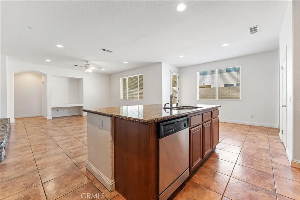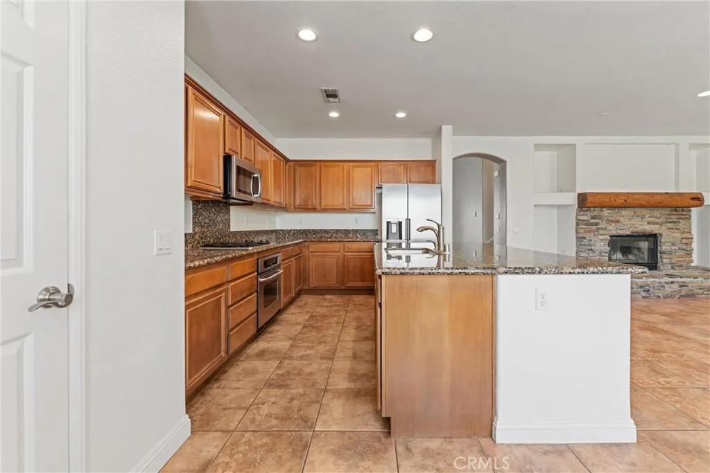 Perfect for a large family this 2 story westside beauty features a covered front door entry into a spacious formal living/dining combination with crown molding, tile flooring, faux wood blinds at the windows and recessed lighting. The large kitchen features tile floors, granite counters, recessed lighting, lots of cabinets, roomy pantry, large center island with sink and breakfast bar plus roomy eating area and built in desk. The adjoining family room also has tile floor, recessed lights, ceiling fan with lights, access to the backyard and a large raised hearth rock fireplace. Don't forget to check out the hidden room behind the fireplace!! Bedroom downstairs has walk in closet and could also be an office. Full bath downstairs with tub/shower combo and glass tub enclosure plus large separate laundry room with storage cabinet & utility sink. Direct access to 3 car garage with roll up doors and opener. Oversized garage could be work shop or bonus room. At the top of the wide carpeted staircase is a comfortable loft area with built in entertainment niche, ceiling fan with lights and recessed lighting. Hall bath features tile flooring and tub/shower combo with glass tub enclosure. Both secondary bedrooms upstairs have carpet, ceiling fan with lights and spacious closets. Primary bedroom upstairs has single door entry, carpet, ceiling fan with lights and recessed lights. The en suite bath features separate stall shower and soaking tub, dual sink vanity, tile floor, recessed lightings plus huge dual access closet with mirrored doors. The property is landscaped front and rear with