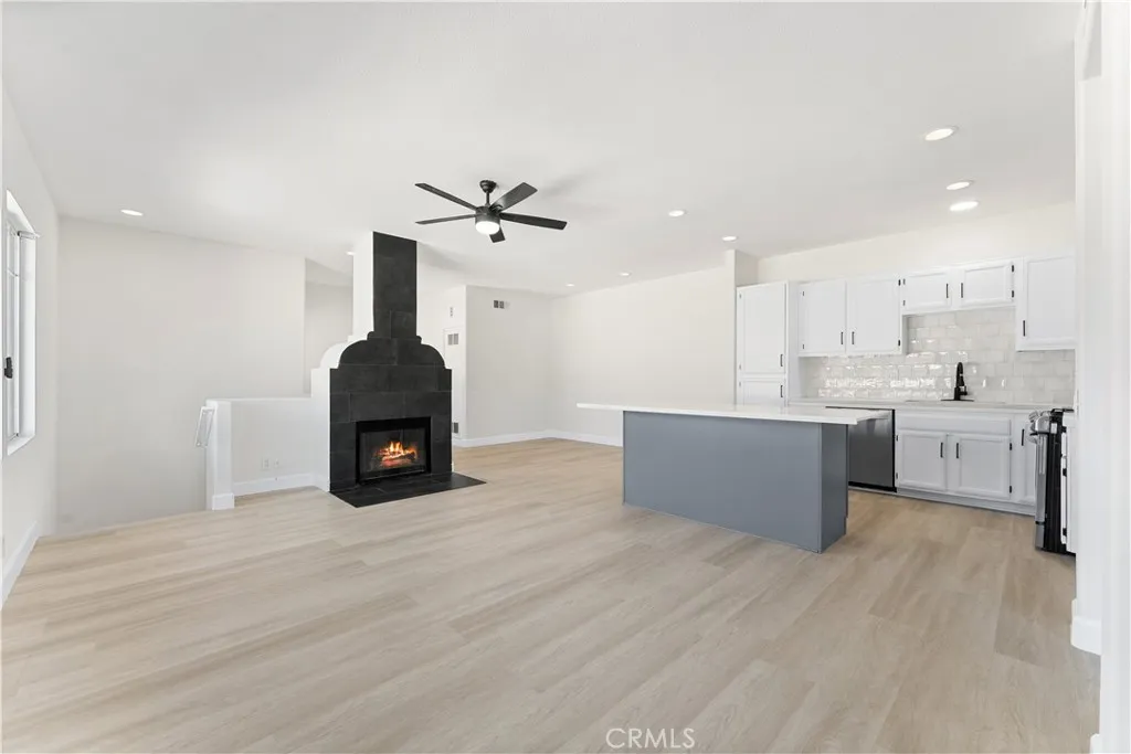 Step into this stunning, remodeled condo, where modern design meets everyday functionality. Located in a desirable gated community with access to a sparkling pool. Inside, youll find fresh paint throughout, brand-new hardware, and stylish new fixtures in every room. The kitchen is a showstopper, featuring an all-new island with soft-close drawers, plenty of bar seating, and a sleek backsplash that extends from the countertop to the upper cabinets. The modern sink includes a high-end faucet with digital temperature display, adding both convenience and a touch of luxury. Relax in the cozy living area, now centered around a completely revamped fireplaceretiled from floor to ceiling for a dramatic, updated look. Both bathrooms have been renovated with new tubs, elegant tile work, and updated fixtures. Additional highlights include new door handles throughout and a dual-control ceiling fan for ultimate comfort. The unit includes a two-car garage with direct access, and a washer and dryer conveniently located in the garage.