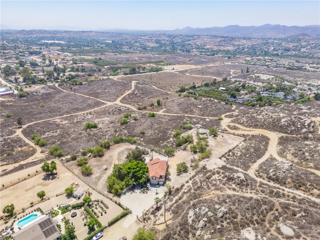 Custom home on 2 ACRES in WOODCREST! This custom-built 5 Bedroom, 3 Bath estate is nestled in the heart of Woodcrest. This property offers privacy, panoramic views from TWO balconies & a lavish master SUITE. The large KITCHEN features custom cabinets, an island with built-in sink and plenty of storage for a clutter-free home. The living room features a wet bar with a prep sink. The abundant natural light and vaulted ceilings create an inviting atmosphere featuring TWO cozy fireplaces. A convenient downstairs bedroom and full bath make multigenerational living possible. The regal staircase leads to FOUR bedrooms upstairs. Double doors open to a primary suite with a private balcony and breathtaking views of the backyard. The luxurious ensuite bathroom features a large walk-in closet and soaking tub with separate shower. Two bedrooms share a Jack-and-Jill bath with double sinks. A spacious balcony overlooking the front yard connects two of the bedrooms. Includes custom chicken coops, an area for horse keeping with water nearby and a variety of mature FRUIT trees. The covered patio and BBQ ISLAND are perfect for entertaining. Plenty of space for a Workshop or RV/Boat storage. The agricultural zoning allows flexibility for equestrian & livestock uses. Plenty of space for ADU or 2nd Dwelling. Enjoy breathtaking sunset and mountain views in an area known for tranquility, open skies, and space to thrive. LOW property taxes, excellent schools, and easy access to all the essentials. This home can bring YOUR dreams to life. Schedule your private tour TODAY!