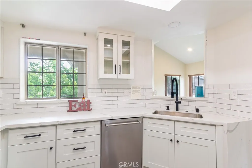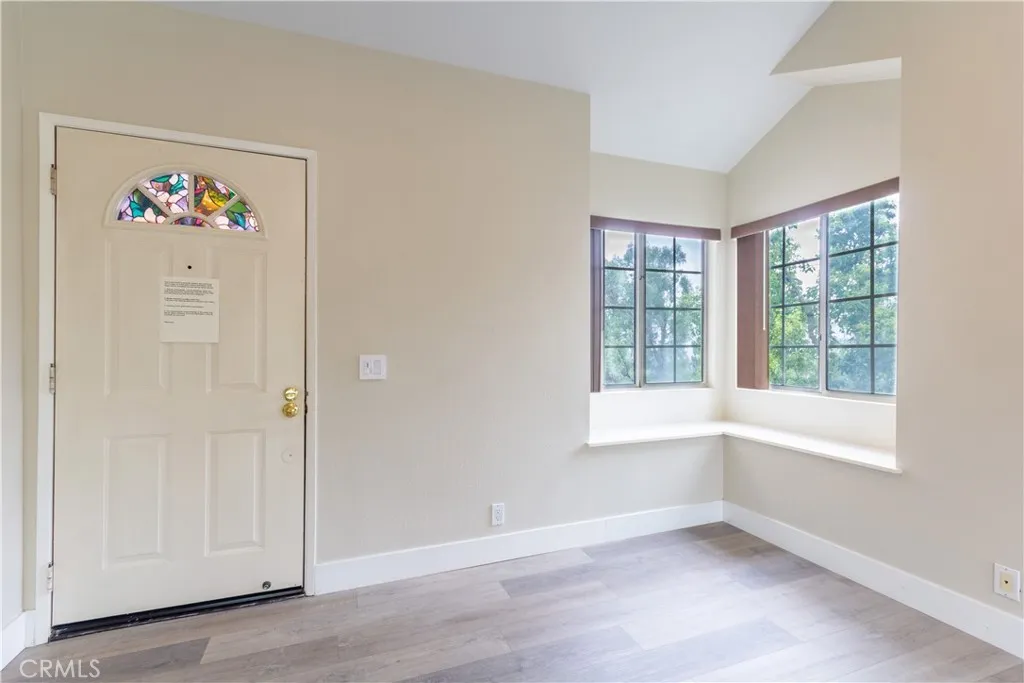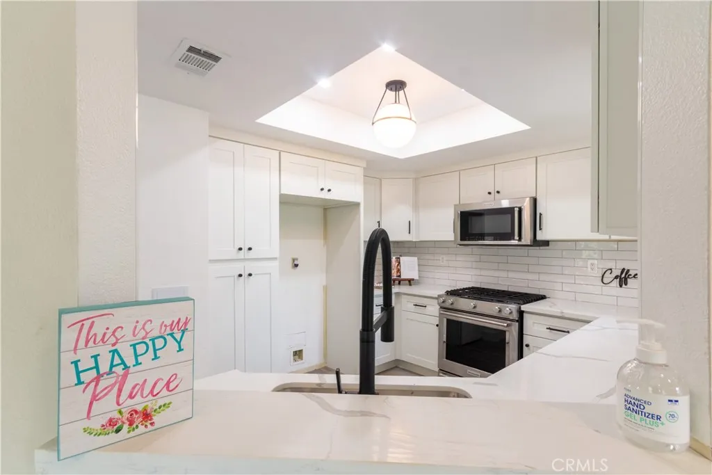 Welcome to this is a beautiful END unit 2 bedroom, 2 bath condo in the highly desired Gated community of Viewpoint in Anaheim Hills. **Spacious and Clean 2 Bedroom, 2 Full Bath and 1 Car Garage with assigned covered Parking space right out the front door. **All living space is on One level and NO neighbor ABOVE or BELOW. **Beautiful Laminated wood flooring is installed throughout the home, Dual Pane Windows, AND RECESSED LIGHTING has been added THROUGHOUT THE HOUSE for a clean, modern look. ** Central Air and Heating. **Open floor plan of home with the Cathedral Ceiling makes the home airy and full of natural light. **The Home features - ** Upgraded Gourmet Kitchen with Beautiful Brand New Quartz counters, All Cabinets, Recessed lights, Includes a Modern Sink and Faucet. **Kitchen appliances (Stove (slide in stove), Microwave, and Dishwasher.) replaced earlier this year with top-tier KitchenAid models. ** The Kitchen has Plenty of Counter Space ** Master bathroom has recently upgraded Double Sink Vanity, and Full-size Shower Stall. ** Beautifully upgraded, the Second Bathroom Showcases a Brand-New Seamless Shower Door with a Magnetic Closure that Enhances both style and Functionality. ** Master bedrooms have built-in closet Organizers. ** The Inside Laundry room features Stylish, Brand-New Barn Doors. ** The Community has well-maintained Landscaping, Spas, recreation area with a heated Pool, Fire pit, Barbeque area, Two Gated entrances. *** Great schools including Canyon Rim Elementary School, Canyon High and El Rancho Charter School. **Stop by and see the Beautiful Neighbo