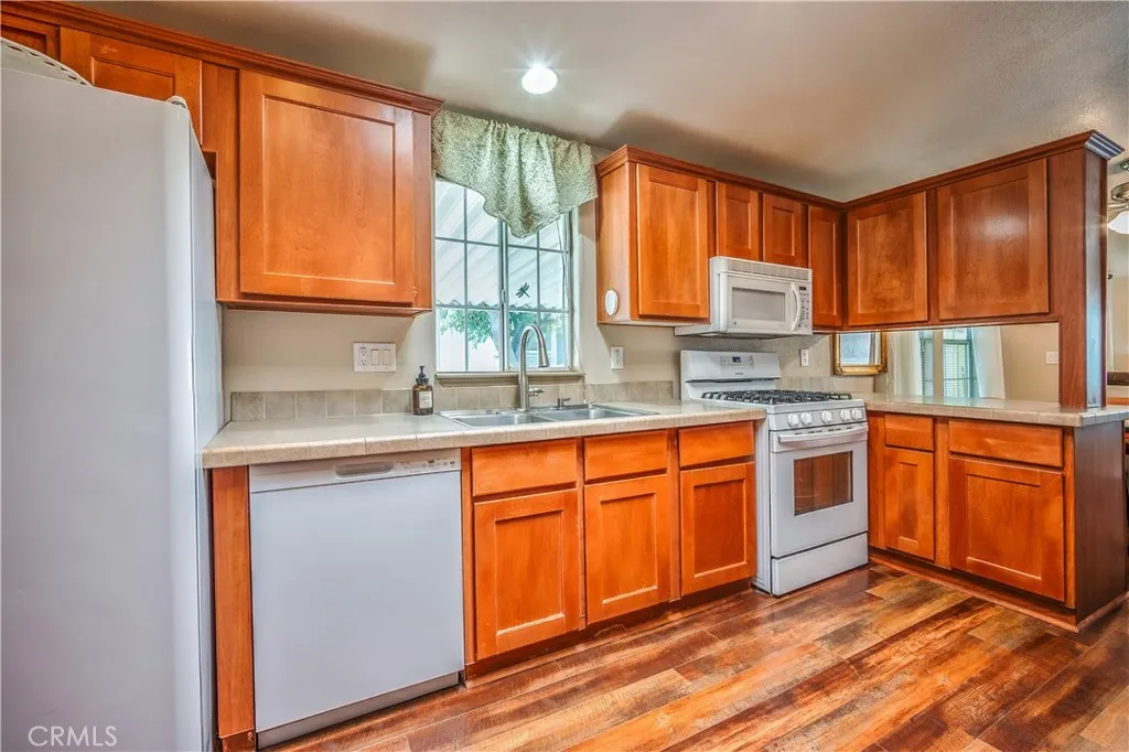 PRIDE OF THE PARK! Reduced to Sell FAST! This 3 bedroom 2 bath home built in 2005 is what you have been waiting for. The home is located on a corner lot in the heart of the Park. The large front Porch is perfect for for morning coffee, for sitting and relaxing and enjoying the Sunsets. Once inside you will notice the beautiful Wood Flooring and Base Boards, and the awesome roomy floor plan. To the right is the nice cozy Family Room with Fireplace. There are 2 bedrooms and 1 Bath also. The Large Master Bedroom is to the Left. The Master has a Walk In Closet, The Master Bath has a Large Garden Tub with Shower and solar Tube for free daytime lighting. The home also has several upgrades including completely dry walled with Bull nose corners, The Larrge Kitchen has upgraded counters and cupbards and One large skylight. You will also find Dual Pane Windows throughout the home. Recently they also added a Tankless Water Heater. The homes exterior was painted less than 2 Years ago. All this in one of the most unique and sought after Parks in the IE Rancho Caballero Park with amenities galore which include two Pools (One Olympic Size and One heated year round) Spa, Tennis Court and 2 Pickleball Courts, Dog Park, and Large Clubhouse, Workout Room and Ball Field and Kids Playground.