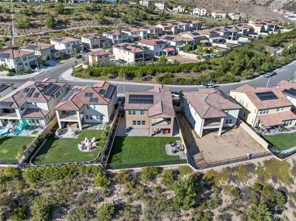 Price Just Reduced! This beautifully upgraded view home checks all the boxes, owned and paid solar, no Mello Roos, and loaded with standout features throughout. No neighbors across the street. From the moment you enter, youll appreciate the open layout, elegant flooring, and stylish touches like recessed lighting and wrought iron stair rails. The spacious kitchen is a dream with quartz countertops, a center island, and stainless steel appliances, flowing seamlessly into the large family room and out to the California room with tile flooring, perfect for entertaining. Enjoy outdoor living in the generous backyard with multiple sitting areas. Downstairs offers a full bedroom and bathroom, ideal for guests or multigenerational living. Upstairs, a large loft offers flexible living space, and the primary suite is a retreat of its own with a private balcony featuring stunning views and a spa-inspired bathroom to start or end your day in luxury. Additional highlights include wood shutters, dual golden zebra shades that preserve views, and so much more. This is a home you wont want to miss!