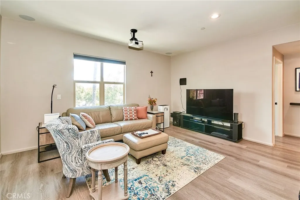 This TOP FLOOR, CORNER property overlooks one of Orange County's hottest attractions today - the Anaheim Packing House and historic downtown Anaheim! This is urban living at its finest with all the amenities of a luxury condo, while being walking distance from the Anaheim Packing House, the Make building, Center Street Promenade, Farmer's park and much much more. Enjoy The Domain's rooftop patio with great seating and views of the nightly Disneyland fireworks. The community also includes elevators for convenient access to the units, a pool, fire pits, gas barbecues and automatic gates for entering the motor courts. The property boast 2 bedrooms, 2 full bathrooms, 2 car garage, private balcony and 10-foot ceilings throughout. The master suite is spacious with a walk-in closet, dual sinks and large shower. From the main living space you have views of downtown Anaheim and the Packing House/Farmer's Park. The home has central AC and heating, low-E dual pane windows, a tankless water heater and in unit washer/dryer. There is also a turnkey plug and play entertainment system with projector, projector screen, and full surround sound system that have all been professionally installed - HDMI and 1080P quality. This is the perfect place to come home to after work and walk across the street for dinner or dessert. Don't let this opportunity pass you by!