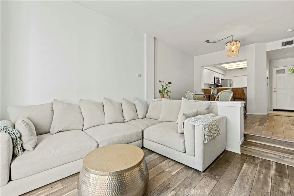 This beautiful Franciscan Hill townhome offers 2 spacious bedrooms, 2.5 baths, and over 1,200 sq ft of inviting living space in the heart of Valencia, CA. As you enter, youll appreciate the easy layout with direct garage access, a newer water heater, a stylishly updated kitchen featuring stainless steel appliances, a newer range stove, white cabinets, quartz countertops, a cozy breakfast bar, tile floors and a convenient pass-through to the dining area. The step-down living room features warm wood laminate floors, a charming corner fireplace, and a private balcony with stunning views, as well as additional storage space. Upstairs, you'll find two generously sized en-suite bedrooms, each with walk-in closets, wood flooring, and one with a fireplace. The natural light pours in through the skylight, and the upstairs laundry closet includes a stacked washer and dryer for your convenience. Enjoy guest parking and a community pool and spa steps away. Youre also just minutes from CalArts, COC, Valencia Town Center, great restaurants, and the 5 freeway. This is the perfect blend of comfort, location, and lifestyle!