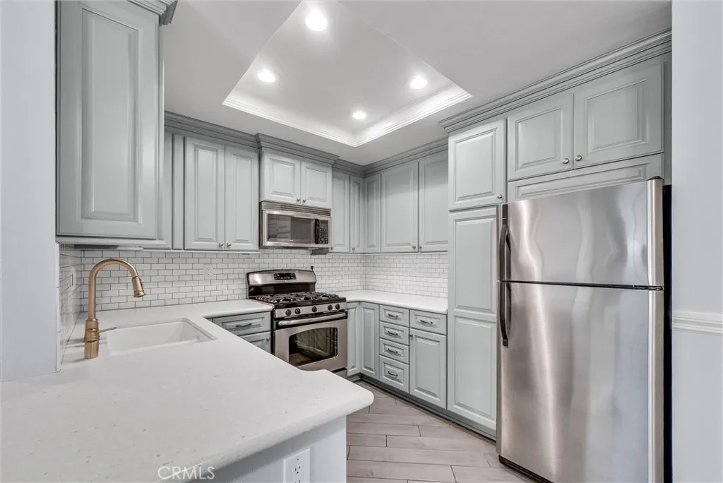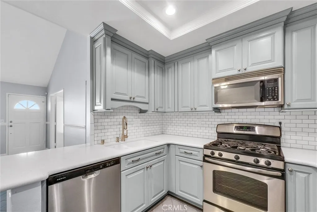 Wow! Super Adorable 2 bedroom 2 bath upper level condo with 1 ca garage in the Hills of Orange. Excellent premium interior location overlooking greenbelt. Open & completely remodeled kitchen with quartz countertops, soft touch cabinets, recessed lighting & stainless steel appliances including 5 top gas range/oven. Newly painted with new vinyl plank flooring in both bedrooms. Wonderful primary suite featuring two slider closets and remodeled bathroom with walk-in shower. Other great features include vaulted ceilings in bedrooms and living room, full size indoor laundry & private front entrance with patio. Resort style pool & spa and barbecues and there is another separate pool and spa location to enjoy for Canyon Hills residents only. Water/trash included with dues. Peaceful living in the Hills Of Orange. Enjoy walk paths and hiking trails right across the street. Convenient access to toll roads, Peter's Canyon, Irvine Regional Park and 55/91 freeways. Best of all, no Mello Roos taxes. You are going to Fall in love with this one!