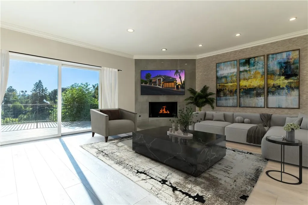 Nestled south of Ventura Boulevard in Tarzanas exclusive hills, this impeccably renovated 5-bedroom, 3.5-bath estate offers approximately 4,352 sq ft of luxury living on a 16,126 sq ft lot. A bold modern faade with new stucco-and-iron fencing, a sleek contemporary garage door, and an elegant double-door entry sets the tone before you even step inside. The expansive interior has been thoughtfully upgraded with premium flooring, smart home tech (iPhone-controlled lighting, Nest thermostat, smart outlets), and a show-stopping designer kitchenfully reimagined with custom soft-close cabinetry, a waterfall-edge quartz island, sleek glass-tile backsplash, integrated wine fridge, double ovens, and a professional-grade stainless steel appliance suite. Downstairs bathrooms have been fully remodeled with sophisticated tilework and fixtures. High ceilings, large windows, and skylights invite abundant natural light into a flowing floor plan that includes formal living and dining rooms, a spacious family room, and a large downstairs bedroom ideal for guests or a home office. The primary suite is a private retreat with a fireplace, massive walk-in closet, and spa-quality bath. Step out back to a private entertainers deck framed by a brand new iron fence and take in serene mountain views perfect for evening gatherings or peaceful mornings. Additional highlights include dual-zone HVAC, custom built-ins, a wet bar, and ample storage. Located within the boundary of top-rated Wilbur Charter Elementary and Gaspar De Portola Middle School, this is your chance to own a showpiece home in a premie