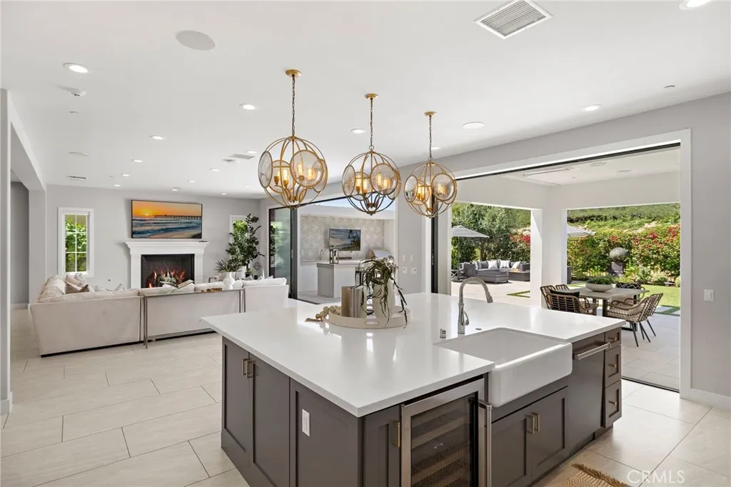 Welcome to this breathtaking Meridian Helios residence, a true work of art by the esteemed Toll Brothers. Nestled within the prestigious 24/7 guard-gated community of Altair Irvine, this elegant home features 6 bedrooms, 6.5 bathrooms, and approximately 4,500 square feet of thoughtfully designed living space on a beautifully landscaped 6,371 square foot lot. From the moment you enter, youre greeted by soaring ceilings and an expansive open-concept layout that radiates both sophistication and warmth. Designer upgrades throughout showcase a seamless balance of luxury and functionality. At the heart of the home lies a chefs dream kitchen with a massive center island, Sub-Zero side by side refrigerator & stacked freezers, Wolf range/stove, pot filler, wine fridge, and seamless flow into the spacious great room. Multi-paneled stacking pocket doors open wide to blur the line between indoor comfort and outdoor living. The main floor also includes a private ensuite bedroomperfect for guests or multigenerational livingand a double-door office offering quiet privacy for working from home. Upstairs, discover five additional ensuite bedrooms, including a serene primary suite with a sitting area, linear fireplace, oversized balcony with heater, dual walk-in closets, and a spa-inspired bath featuring natural white marble finishes throughout the floors, countertops, and expansive shower enclosure. A freestanding soaking tub and dual vanities complete this elegant retreat. Outside, the oversized entertainers yard is a private oasis with a California room, built-in heater, state-of-the-art