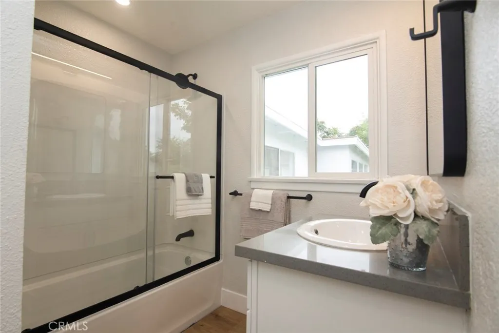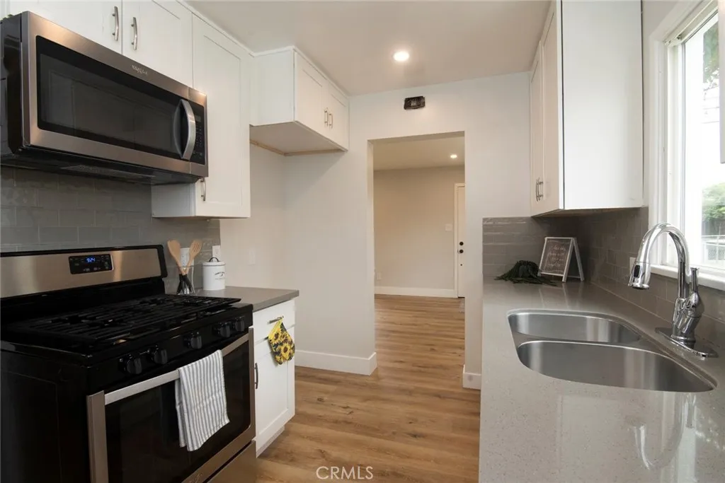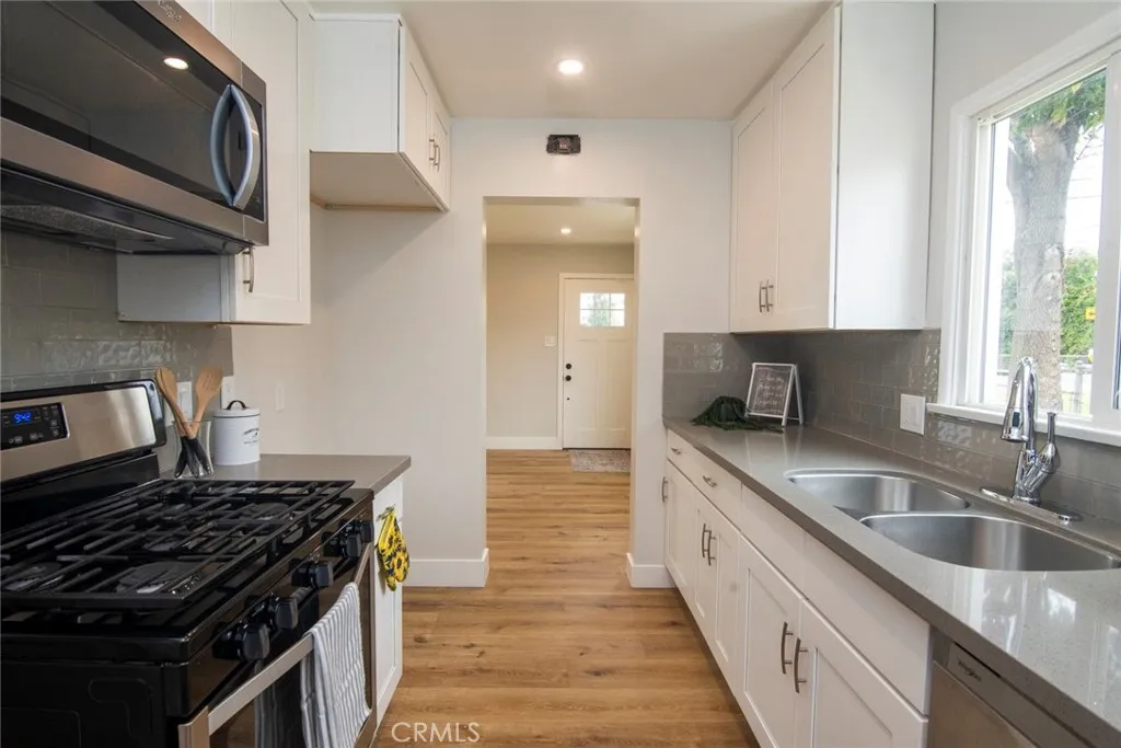 This home is a charming mid-centuryclassic, completely remodeledwith attention to every detail, and all the modern conveniences you could imagine! From the stunning entry door to the newluxuryvinylflooring, the spacious living/diningroomcombo invite youin. The sunny kitchen haslots of quartz counter space, shaker cabinetry, new dishwasher, a gas range and a new microwave. The convenientinsidelaundry roomis just off the kitchen. The bathroom is completely upgradedwith a new tub, glass shower enclosure and modern fixtures galore! Quartz counters and the shaker vanity cabinet will make you think you are in brand new construction! The two good sized bedrooms feature new LVP flooring and ceiling fans. The brand new mini-split AC and heat units are located in both bedrooms and in the living room. With energy efficient dual pane windows, you will stay cool in the summer and warm in the winter! PLUS, don't miss the huge add on family room in the back of the house. This space is non-permitted, so it is not accounted for in the house square footage but it offers lots of room for larger gatherings and extra fun. The two-car finished garage, with auto door-opener, plus the extended driveway, offers ample room for parking! A huge fully landscaped front andback yard with sprinkler system, are ideal for your outdoor activities. This home is located near schools, parks, and convenient shopping and restaurants. Close freeway access makes this a commuter's dream! This darling place will be snatched up soon! The Seller is offering a concession of $12,000 to help offset closing costs, lower yo