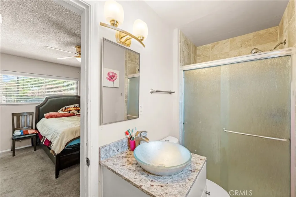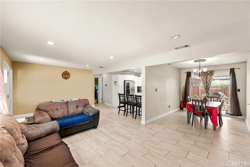 Beautiful single-story home loaded with upgrades and completely move in ready! This one of a kind property offers fantastic curb appeal. Step inside to a tile entry and an open floor plan featuring a formal dining area highlighted by a chandelier and a slider that lead to a private backyard with new fencing, a paver patio, and space perfect for entertaining. The upgraded kitchen showcases like new white cabinetry, stainless steel appliances including a gas stove, microwave, dishwasher, and refrigerator, all complemented by stunning countertops, tile backsplash, and tile flooring. All bedrooms are equipped with ceiling fans, and updated sliding closet doors, with stylish window shades throughout. The guest bathroom features a vessel sink, granite countertop, custom tile shower, updated faucets, and a glass shower door. The primary bathroom offers a custom-tiled tub, new vanity with a vessel sink, granite countertop, and upgraded fixtures. Additional upgrades include all new interior doors and lighting, central heating and A/C, and professionally installed front and back yard sprinkler system. The home also features an attached two car garage with an automatic door, perfect to convert into a JR ADU in the future, potential for RV parking. Dont miss this incredible opportunity!