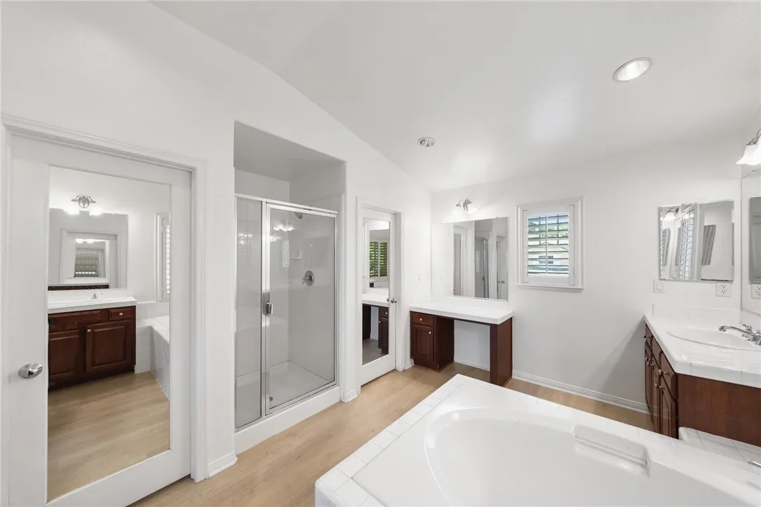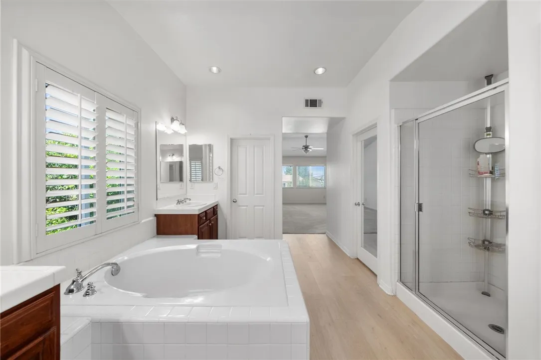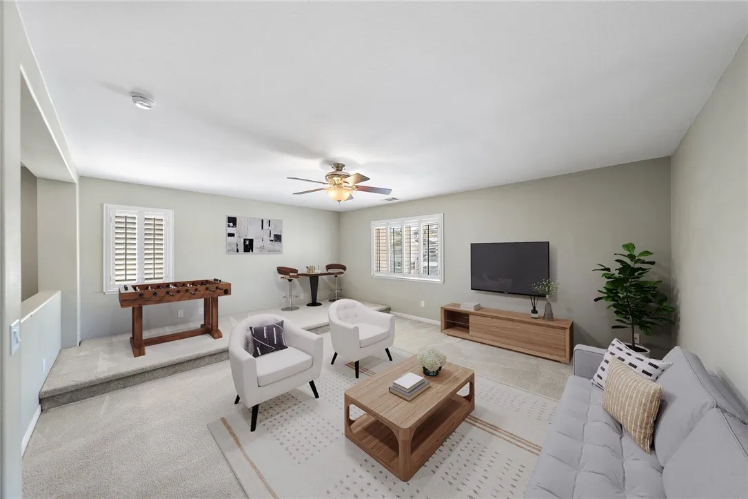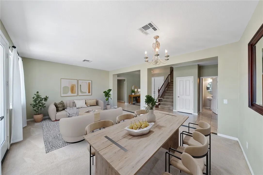 *Multigenerational living floorplan* 2 bedrooms, 2 baths on the main level* This hard to find layout is perfectly configured to accommodate multigenerational living, extended family, guests, in-laws or anyone seeking private, convenient downstairs accommodations. Come see this beautifully designed true 6-bedroom, 4-bathroom home located in a serene Menifee neighborhood. As you enter the foyer, youll appreciate the soaring vaulted ceilings and large windows in the formal dining & living area providing a bounty of natural light, creating a bright and airy feel. The downstairs features two bedrooms, a full bathroom, as well as an additional half bath easily accessible from the common areas. At the heart of the downstairs is a large kitchen thats perfect for both everyday living and entertaining. It features a large center island with seating, double ovens, an abundance of cabinet space, and a huge walk-in pantry, providing all the storage you need. Upstairs youll find an additional 4 bedrooms and a versatile bonus loft providing the perfect space for a home theater, game room, or additional lounge area. Enjoy beautiful mountain views from the large primary bedroom with primary bathroom featuring new flooring, dual closets, dual sinks, soaking tub & a dressing table. Also located upstairs for your convenience is a laundry room with plenty of cabinets for storage. Step outside into the backyard oasis featuring a spacious Alumawood patio cover outfitted with built-in ceiling fans and ambient lighting, it creates a comfortable space for both daytime lounging and evening gatherings