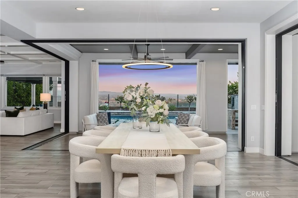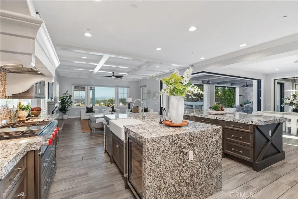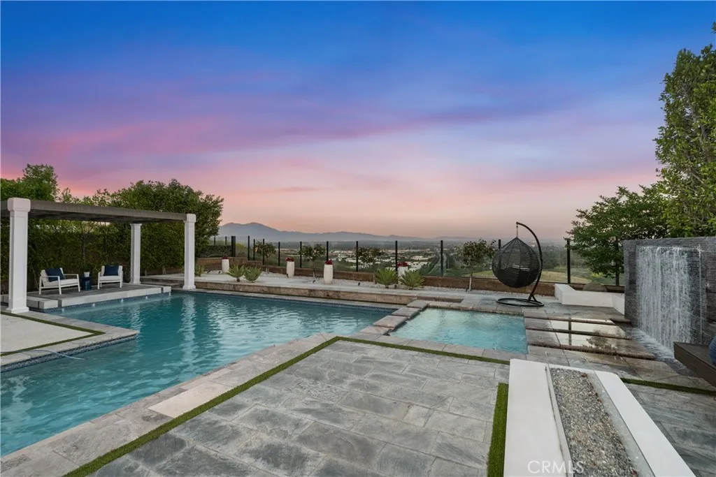 Presenting one of THE most magnificent Contemporary Estate Homes in Irvine with stunning unobstructed panoramic views of city lights, and the coastal hills of Laguna Beach Wilderness open space. The incredible "Crown Jewel" of the prestigious 24/7 guard-gated community of Hidden Canyon The immaculate "Marbella" estate is situated in the esteemed upper level of the community, and includes 5 ensuite Bedrooms, 6 Baths spanning nearly 5,923 SF of luxury living space, on an expansive 10,467 SF cul-de-sac PREMIUM LOT on the most popular community view street in the upper levels. This remarkable estate home is impressive from the moment one enters the two-story Grand Foyer with dramatic dual staircases and chic chandelier. The welcoming open floor plan with oversize windows and large pocket doors invite ample natural light and frame coastal hill and city lights views from nearly every room. The main level dazzles with contemporary flare including imported tile flooring, spectacular finishes, designer window treatments, and custom stone fireplaces. The chef-inspired primary kitchen with dual kitchen islands, is coupled with an inter-connecting secondary kitchen. The kitchens feature Sub-Zero refrigerators, 4 WOLF Ovens, two WOLF Stoves is coupled with a full second kitchen for full-scale entertaining. The main level features a MAINLEVEL BEDROOM LIVING SUITE, formal dining room, conservatory, and great room interconnected to an outdoor area beyond imagination. Upon stepping outside - the expansive space includes a Pool, Spa, covered seating logia, and views to beyond imagination. Th