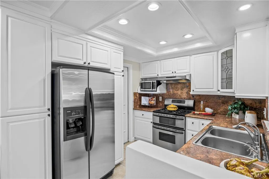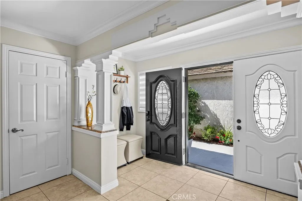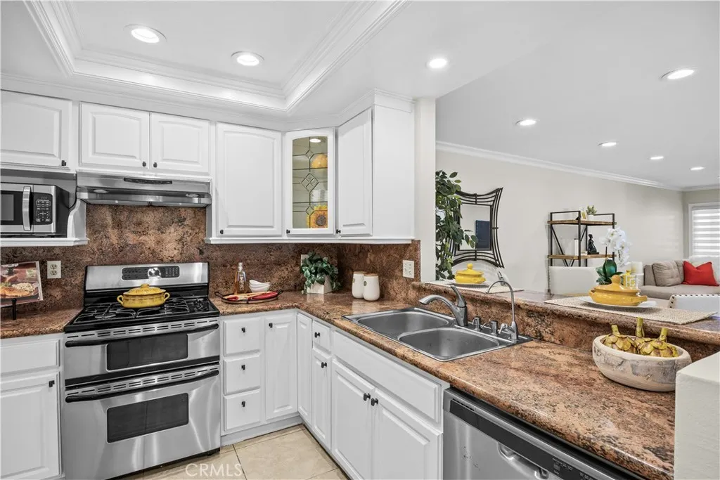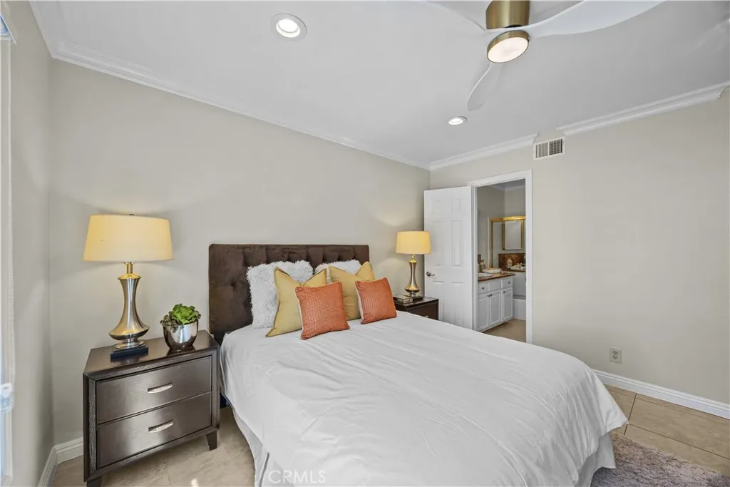 Welcome to this beautifully upgraded single-family home in the desirable Orange Tree neighborhood of Irvine!! Boasting dual master suites; one on the main level and one upstairsthis versatile floor plan is ideal for multi-generational living or hosting guests. Step through the custom double-panel entry door into a warm and inviting space featuring a comfortable living room, open dining area, main-floor primary suite, and a remodeled kitchen with a breakfast bar and nook. The open-concept kitchen showcases granite countertops, glass-front cabinets, and stainless-steel appliances including a double oven, dishwasher, microwave, refrigerator, wine cooler, and water purifier. Upstairs, youll find a second primary suite and a third bedroomboth with access to a shared private balcony, perfect for enjoying a quiet morning coffee or a peaceful evening breeze. The main-level primary bathroom features new fixtures, while the upstairs suite boasts a travertine-surround shower, recessed lighting, and a new vanity mirror and lighting. The home is tastefully upgraded throughout with tile flooring downstairs, wood laminate flooring upstairs, crown molding, baseboards, and decorative interior columns that add character and charm. Recent improvements include fresh interior and exterior paint, recessed lighting, new light fixtures, ceiling fan, new window coverings, and updated exterior lighting in both the front and back. Additional highlights include a 2-car attached garage with fresh paint, new epoxy flooring, and custom built-in cabinetry. The new landscaped front yard features a drip irr