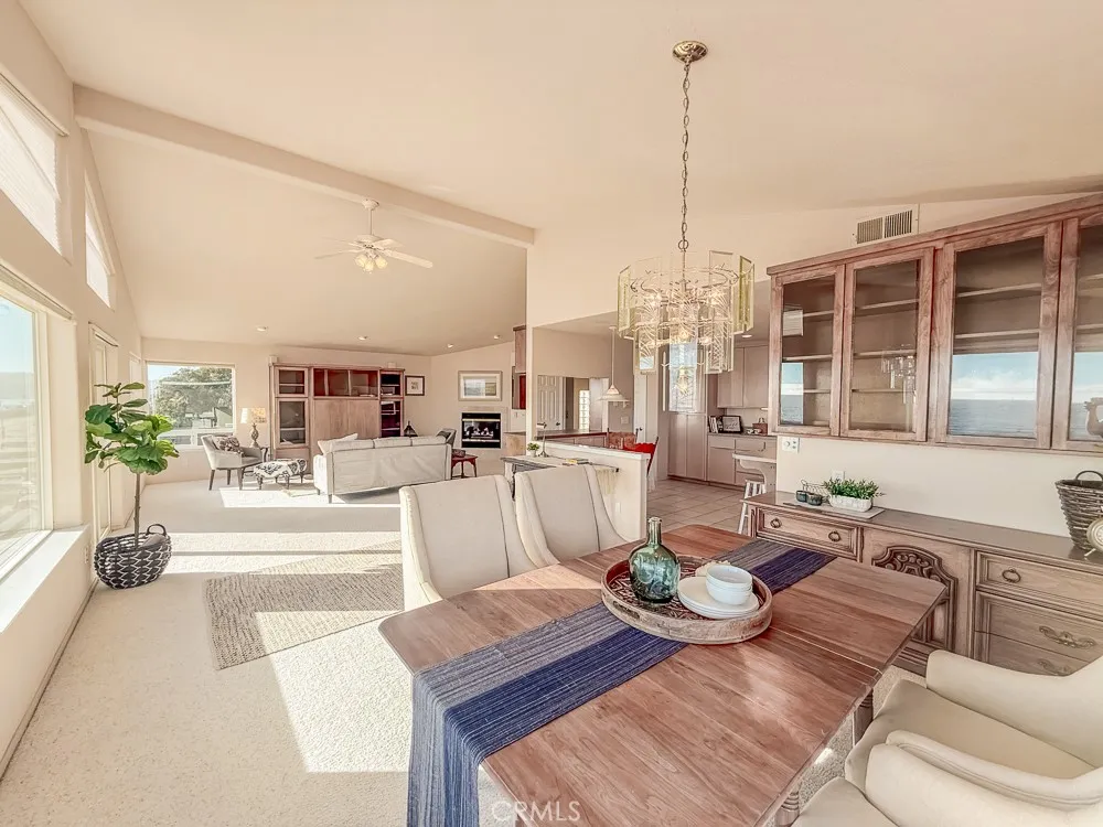 This impressive 4BD/2.5BA home in south Cayucos has an extraordinary layout and offers a rare opportunity to customize your dream beach retreat. It stands out with boundless entertaining and living possibilities for indoor and outdoor enthusiasts alike with majestic views, unique living spaces, and rare, custom features throughout the its three levels, all connected via wide staircases or a quiet elevator ride. The expansive main living area on the top floor features vaulted ceilings and wall-to-wall windows that showcase the stunning ocean views of Estero Bay from Morro Rock to the Cayucos Pier and beyond. The kitchen has lots of counter space and storage, a cute breakfast nook, and large island with an adjacent dining room overlooking the ocean or mosey outside to the wide upper deck to relax during the gorgeous sunsets. Throughout the comfortable open living area youll find beautiful custom built-ins plus a cozy fireplace. Off the living room is the large primary bedroom ensuite with soaker tub, shower, double vanity, extra large walk-in closet, second closet, and laundry room. On the lower level you will find an enormous finished flex-room to jolt your imagination, to use use as a second living area, media room, game room, or more. Plus, hobbyists, collectors, and makers will instantly recognize the utility of the turnkey shop/studio. There are three additional large bedrooms on the main entry level, all with good closet space, partial ocean views, and a full bathroom. There are newer windows throughout, recently upgraded garage doors, an intercom system, and internal v
