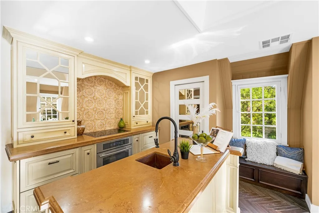 Welcome to one of Pasadenas most extraordinary legacy properties, an architectural masterpiece blending historic English Arts & Crafts design with thoughtful modern updates, nestled on over 3.5 acres of flat and gated grounds in the prestigious South Arroyo neighborhood of SW Pasadena. Originally built in 1915 by renowned architect Stiles O. Clements who designed the Hollywood Park Racetrack and Beverly Hills High School, this grand English Revival estate, also known as the Chandler House, was later expanded in 1931 by Kenneth A. Gordon and served as the 50th Annual Pasadena Showcase House of Design in 2014. With nearly 12,000 square feet of combined living space, including close to 10,000 square feet in the main residence and nearly 1,300 square feet in the restored two-story carriage house, this estate offers both grand scale and architectural integrity. The home underwent a meticulous, top-to-bottom restoration in 20212022, blending timeless craftsmanship with modern comfort and convenience. Inside the main house, the signature architectural details include a 25x40 redwood-paneled Great Room with hand-hewn beams, leaded glass windows, a massive fireplace, and oak floors. The home features 6 bedrooms and 7 bathrooms, with 4 en-suite bedrooms upstairs, as well as cozy family spaces, a TV lounge, a spacious laundry room, and a remodeled third-floor flex space. A stunning modern kitchen with Viking appliances, a breakfast area, and an adjacent formal dining room providing an excellent space for hosting gatherings, celebrations, and memorable holiday parties. The re-designed