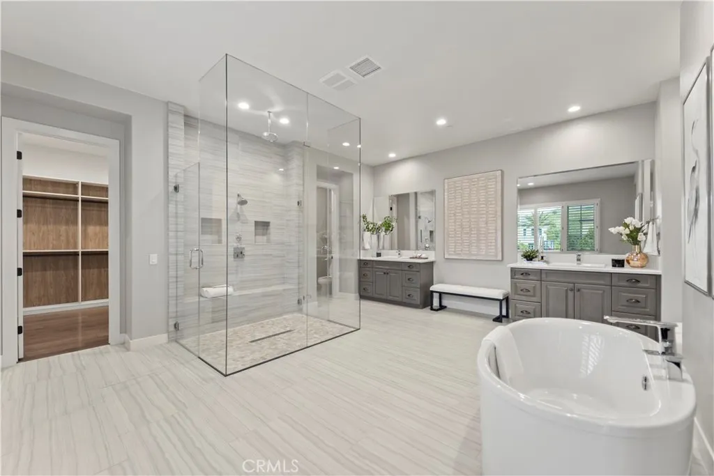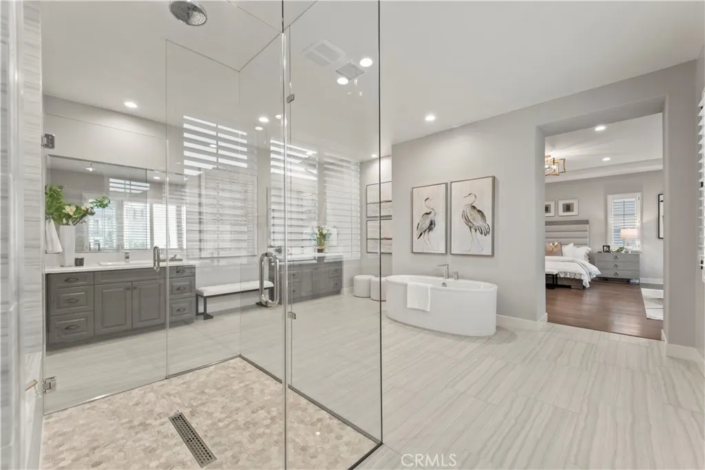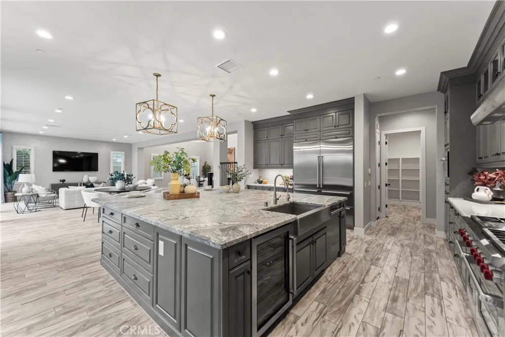 The highly sought-after Solano Collection by Toll Brothers located in the prestigious 24-hour guard-gated community of Altair. Nestled on a premium corner lot, this home features 5 spacious bedrooms, 5.5 bathrooms, and soaring 20ft ceilings in the great room, complemented by a 24" multi-panel stacking door that seamlessly blends indoor and outdoor living. Designed to model-home standards, the property boasts tile flooring throughout the hall, living room, dining room, and kitchen, with elegant wood flooring in all bedrooms, the loft, and on staircases. The gourmet kitchen is outfitted with top-of-the-line WOLF appliances, a built-in 60-inch SUB-ZERO refrigerator, upgraded cabinetry, a premium sink, and Caesarstone countertops and island. A 15-inch multi-panel stacking door enhances the kitchens open layout. The second-floor loft offers versatile space for various uses, while the luxurious master suite features coffered ceilings, a spacious walk-in closet, and a serene retreat. The master bathroom includes dual vanities, a large shower with a seating area, and a soaking tub for ultimate relaxation. Resort-style amenities within the community include a private clubhouse, multiple swimming pools, tennis courts, outdoor fireplaces, and BBQ areas. The home is conveniently located near shopping, dining, parks, sports fields, and award-winning Irvine Unified schools while having easy access to major destinations like the Great Park, Irvine Spectrum, Fashion Island, John Wayne Airport, and highways 405, 5, 133, and 241.