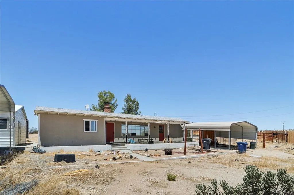 Located on a 5-acre parcel with approximately 1.2 acres fenced, this view property offers privacy, space, and functionality. The home features stainless steel appliances, an electric stove, and an electric water heater. The spacious living room includes a brick fireplace. There are two bedrooms and one full bathroom. Exterior features include two carports, a detached garage with electrical on a concrete pad, multiple storage sheds, and drought-tolerant natural landscaping. Ideal for buyers seeking land, views, and versatile outdoor structures!