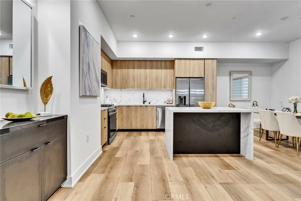 This modern urban condominium, situated in the heart of historic Pasadena, seamlessly combines tranquility and convenience. Residents can enjoy a spacious common area designed for recreation and relaxation. The open-concept layout is bathed in natural light, highlighting sleek hardwood floors and modern amenities. The unit features top-notch Samsung appliances, built-in closets, in-unit laundry, and abundant storage space, including in the secure underground garage. The modern kitchen is equipped with stainless steel appliances, upgraded countertops, and ample storage. The dining area is perfect for intimate dinners or entertaining guests. The cozy bedroom offers generous closet space and total black-out blinds to ensure restful sleep. The bathroom boasts stylish fixtures, creating a serene, spa-like atmosphere. Experience the best of Pasadena living with convenient access to dining, shopping, and entertainment.