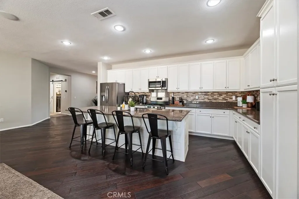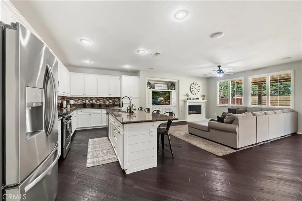 **FORMER MODEL HOME IS READY FOR YOU** Welcome to this TURNKEY Heritage Lake Home with everything you want! You won't want to miss the opportunity to make this 2158sf Single Story, 2 Bathroom, 3 Bedroom with an OFFICE that could be used as a 4th Bedroom and a 3 Car Garage Home all yours! With Rich and Indestructible Engineered Hardwood Floors throughout paired with Newer Carpet in all Rooms, Plantation Shutters, Recessed Lighting and Newer Paint. This Open Concept Home flows from the wide Entry Hallway all the way through the Beautiful Kitchen with White Shaker Cabinets, Granite Countertops and a HUGE Kitchen Island that overlooks the Living Room with Built In Entertainment System, Surround sound, Newer Carpet and a New Decorative Fireplace along with a Separate Dining Area and a Sliding Door that Exits to the Backyard with Grass, a Dog Run and Decorative Concrete Patio and an Alumawood Patio Cover with Lights and Fan that covers the entire length of the Home. Back Inside down the hall are 2 additional bedrooms with sliding closet doors and ceiling fans, a Bonus Room that can be used as a 4th Bedroom and a guest bathroom featuring upgraded tile floors and a tub/shower combo with a Sliding Glass Door. At the opposite end of the Home you will find the Primary Suite with Crown Molding and a Large Walk In Closet, Dual Sinks, Shower and a Soaking tub and a spacious Laundry Room with access to the 3 Car Garage. Newer Interior & Exterior Paint and Newer Water Heater. This Home truly is TURNKEY. Save $ with a Solar Energy System that has been very well maintained and Produces enoug