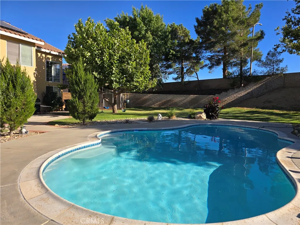 PRICE TO SELL!!! Welcome to your slice of paradise! This 4-bedroom, 3-bathroom home that sits on a prime location of West Palmdale with great schools in the area and, just a quick 5-minutes from good restaurants, convenient stores, and 10 minutes from the Palmdale Mall. This stunning two-story house has an open concept layout with amazing high ceiling, modern finishes, and an abundance of natural light. The updated kitchen features stainless steel appliances, a large and spacious island, granite countertops, good amount of cabinet for storage, also a pantry area, and seamlessly flows into the living and dining areasideal for entertaining. Relax in the spacious primary suite featuring a see-through fireplace with a lounge area to enjoy a nice relaxing time, and direct access to the lovely balcony overlooking the pool area. Also the Master bedroom has a beautiful bathroom with a double sink, a tub, and a standing shower with glass doors and don' t forget the added storage offered by the Master walk-in closet or the ample and spacious closets featured in each of the 3 other bedrooms. One bedroom and one full bathroom on the first story and 3 bedrooms upstairs including the master bedroom. This home offers a SOLAR SYSTEM which is debt free and paid off and a three car garage, double panel windows, central AC and a convenient laundry room on the first floor. Enjoy many days with family on this half of acre landscaped patio with a resort style private in-ground sparkling pool. A true entertainers back yard. Truly relaxing. DO NOT MISS OUT on this opportunity to live in Paradise P
