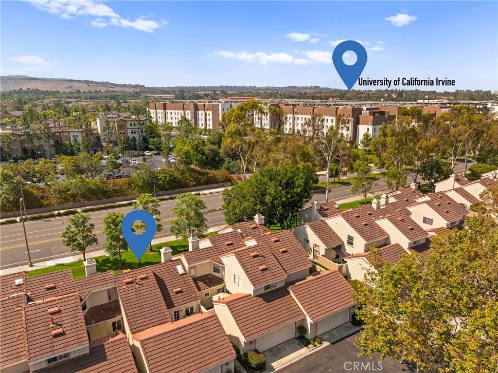 Location, Location, Location! Situated in the heart of the highly desirable University Town Center, this beautiful 2-bedroom, 2.5-bathroom condo is part of the sought-after Cambridge Court community. Just minutes from award-winning schools, top-rated restaurants, fast food, movie theater, shopping, parks, and John Wayne Airport, this home offers unbeatable convenience in one of Irvines most coveted areas. Step inside to discover a bright and airy open-concept living space featuring vaulted ceilings, expansive shuttered windows, and a cozy gas fireplaceperfect for relaxing. The adjacent dining area is bathed in natural light and flows directly into the kitchen with stainless steel appliances, a 5-burner gas stove with a removable griddle, ample cabinet storage, and a bar-top counter ideal for casual dining. Just off the kitchen, the family room opens to a private deck patio equipped with two electrical outlets and a gas lineideal for grilling, sipping your morning coffee, or giving your pets a secure outdoor space. Additional features on the main level include a spacious under-stair storage closet, a convenient half bath, and direct access to the 2-car garage with laundry hookups, built-in cabinets for extra storage, newer tankless water heater. The home is outfitted with central A/C and heating, also newly installed in 2022, and has been freshly painted throughout. Flooring includes terracotta tile and wood laminate in the main living areas, and new carpet upstairs. Upstairs, are two generous en-suite master bedrooms, each with its own private bath enhanced by skylights. Th