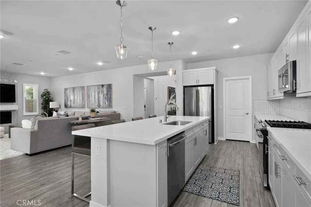 **Move-In Ready Model Home Fully Furnished & Upgraded! Step into luxury with this stunning 5-bedroom, 3-bathroom that was a new builder close out model. Thoughtfully designed and fully furnished for immediate move-in. Located in a desirable neighborhood on a corner lot, this two-story residence showcases an open-concept layout with soaring ceilings and elegant finishes throughout. Enjoy designer-selected upgrades including premium flooring, custom window coverings, and stylish wall dcorall included. The heart of the home features a gourmet kitchen with upgraded quartz countertops, pendant lighting, and a spacious island perfect for entertaining. Double sliding doors open to a beautifully landscaped backyard and a California Room complete with outdoor furnishings for seamless indoor-outdoor living. Relax in the great room with a cozy fireplace and custom lighting, or retreat to one of the spacious bedrooms. All bathrooms are upgraded with quartz countertops, adding a touch of sophistication. The laundry room is fully equipped with upper and lower cabinetry, a large sink, and modern appliances. Additional highlights include: Open staircase with elegant railing, Washer, dryer, refrigerator, and television included, Prewired alarm system for added security. This home is a rare opportunity to own a professionally designed model with every detail curated for comfort and style. Solar panels are paid off. Lightly used as a seasonal vacation retreat, this home has been meticulously maintained and occupied only twice a year by the original owner - offering a like-new living experien