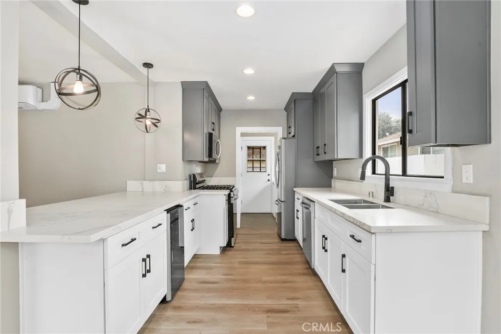Welcome to your dream house in the heart of Lakewood. This exquisitely updated residence invites you to experience modern comfort from the moment you arrive. A charming brick patio leads you to the front entrance, where you're welcomed into a spacious, light-filled living area that is air-conditioned for year-round comfort and perfect for both relaxing evenings as well as stylish entertaining. To your right, a gourmet kitchen awaits. Thoughtfully reimagined with sleek stainless steel appliances, updated countertops, and modern cabinetry, its a culinary space that balances function with finesse. Beyond the kitchen, youll discover a bright and airy laundry room, bathed in natural light and offering ample space. Continue on to a bedroom, where wall-to-wall windows frame picturesque views of the cozy backyard that is complete with a stately, fruit-bearing avocado tree that adds both shade and charm. Down the hallway, a beautiful full bathroom is flanked by a spacious bedroom and an en suite office. Passing through the office, your expansive primary suite awaits! Boasting a cozy fireplace, a luxurious bath, and private access to the tranquil backyard. Step outside to find your two-car garage surrounded by mature trees that provide privacy and the feeling of life that only nature can offer. All of this is perfectly situated just moments from premier shopping, dining, parks, schools, and more, making this stunning Lakewood residence the perfect place to call home.