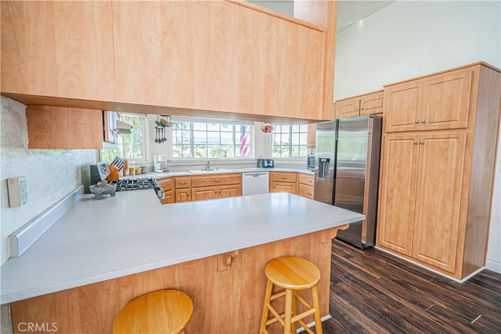 Welcome to 20073 Edgewater Drivea spacious 3-bedroom, 2-bath home with laminate flooring throughout, fresh interior paint, and a neutral color palette. The updated kitchen offers a pleasant view from the window, while the living room features vaulted ceilings and a cozy fireplace. The primary suite includes an en-suite bath with a large soaking tub and separate shower. Vaulted ceilings throughout the home. A generously sized indoor laundry room provides ample storage space. The backyard includes a pergola, and the home offers added privacy with no front neighbor. Conveniently located minutes from Discovery Park, grocery stores, schools, and the 14 freeway. The monthly land lease of $1,649.09 includes access to a 24-hour guarded gate, clubhouse, two swimming pools, a spa, and play areas.