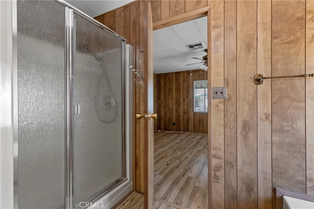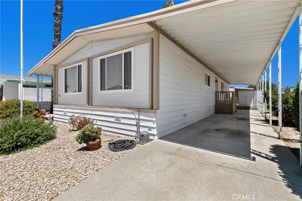 Lovely 2 bedroom 2 bath double-wide in Eden Roc North 55yr+ senior mobile home park. Spacious carpeted living/dining area with ceiling fan, stained glass fixture, and built-in china hutch. Vinyl wood-look flooring throughout the remainder of the home. Round-style kitchen with gas stove, dishwasher, refrigerator, and handy buffet bar open to family room with sliding glass door to covered porch. Master has large closet, ceiling fan, linen closet, garden tub and separate stall shower. Inside laundry, Dog run, Raised cover porch, 2 sheds. Loads of recreational options including, clubhouse, card room, pool, spa, and other options.