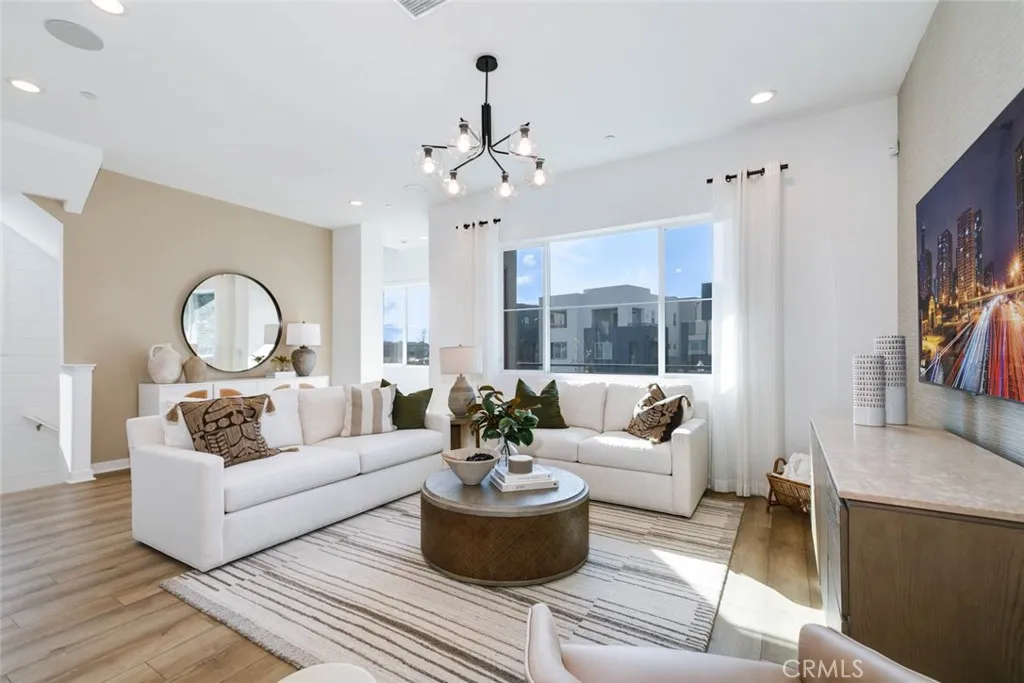 FULLY FURNISHED by a designer, all you have to do is pack your toothbrush! This exquisite move-in-ready model home features 4 bedrooms, 3 bathrooms, and a dedicated office across 2,100 square feet of thoughtfully designed living space. Ideally situated in Solis Park, a vibrant enclave within the prestigious Great Park master-planned community, this residence offers a perfect blend of comfort and convenience. The first floor includes an attached two-car garage, while the second level boasts a spacious great room, a contemporary kitchen, and a bedroom with a full bathroom. The kitchen is elegantly appointed with quartz countertops, upgraded cabinetry, and brand-new stainless-steel appliances. The third floor showcases the luxurious primary suite and two additional bedrooms. Zoned for the highly acclaimed Irvine School District, the home is just a short walk from Portola High School, the K8 Solis Park School, and the communitys amenities, including a park, pool, and clubhouse. Additional highlights include fully paid-off solar panels and the inclusion of all furniture, TV, and washer/dryermaking this truly a move-in-ready home you wont want to miss.