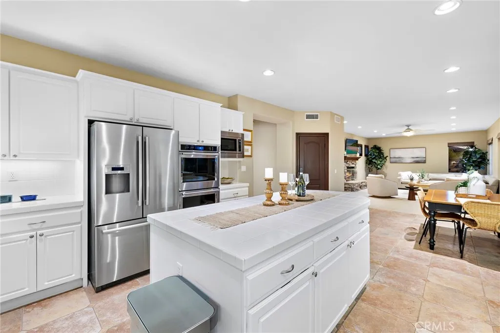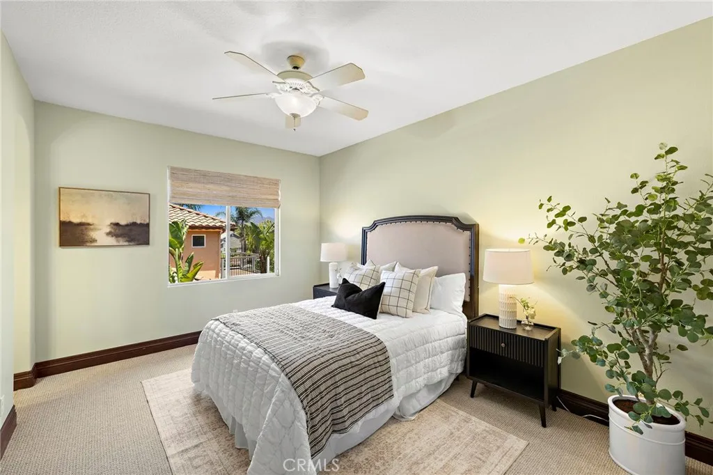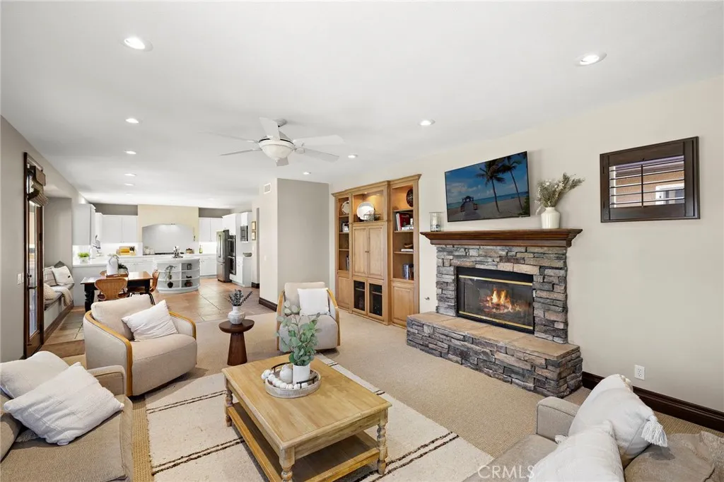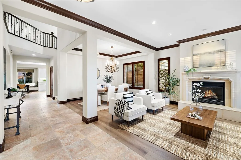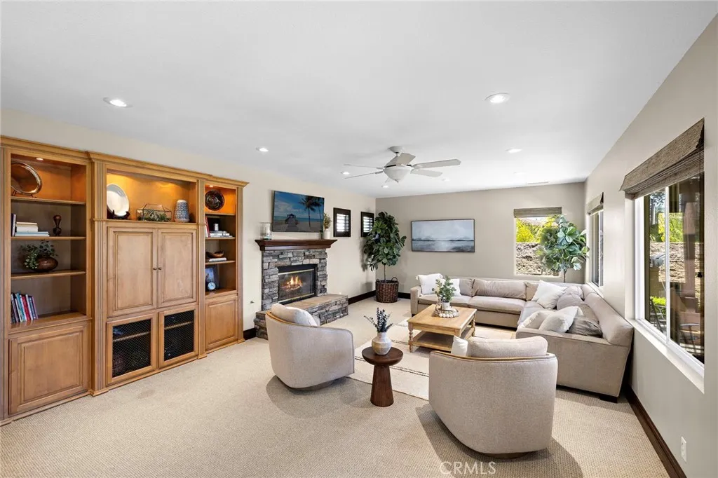 Step inside this welcoming home in the guard-gated Stoneridge neighborhood, where families enjoy peace of mind and exclusive access to Lake Mission Viejo. Located on a quiet single-loaded street adjacent to a greenbelt, this residence offers added privacy and a tranquil setting. With five flexible bedrooms, 5.5 baths, and a spacious 4-car garage, this home offers both style and functionality. Bright natural light fills every room, creating a cheerful setting for busy days and relaxed evenings. Gather in the open dining and living rooms, centered around a cozy fireplacea perfect spot for catching up after work or school. The downstairs includes a flexible office with its own closet and a full bathroom next door. This space easily transforms into a main-floor bedroom for guests or extended family when needed. The kitchen is truly the heart of the home. Theres a large center island for prepping dinners together, extensive cabinetry, a walk-in pantry for all your groceries, and wide views of the backyarda great setup for keeping an eye on everyone at play. This space flows into an eat-in area and an extra-large family room, complete with built-ins and a second fireplace. Movie marathons, game nights, and family gatherings feel right at home here. Upstairs, the primary suite features vaulted ceilings, dual closet and master bath. Open the doors to your own private balcony and enjoy panoramic views of the city lights. Three additional bedrooms with ensuites complete the upstairs, providing space for everyone to recharge or work from home. The garage is one that will make any home